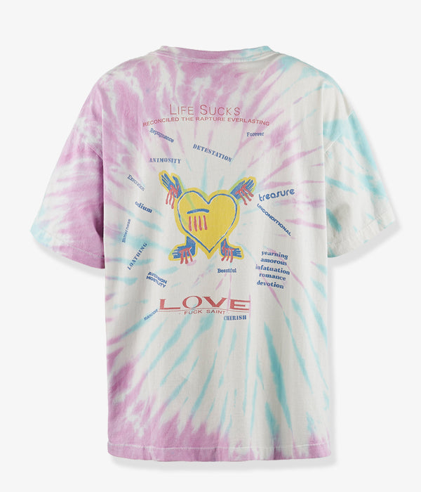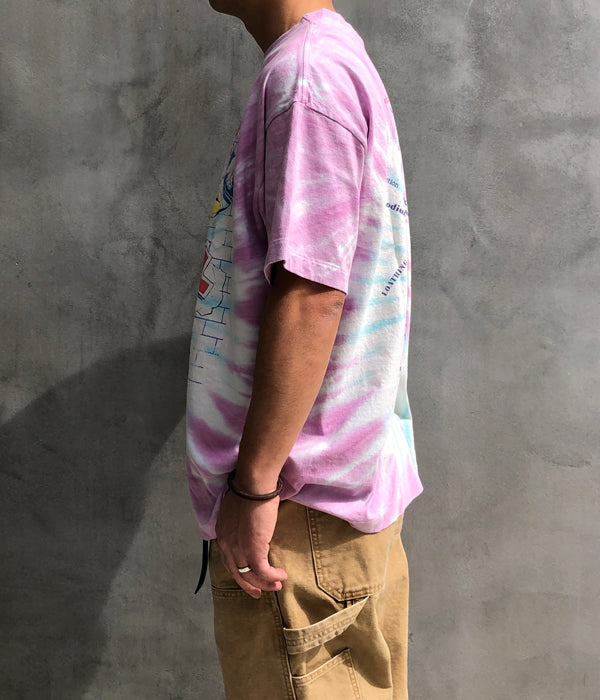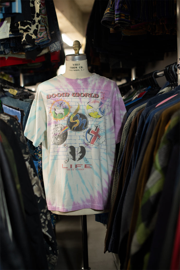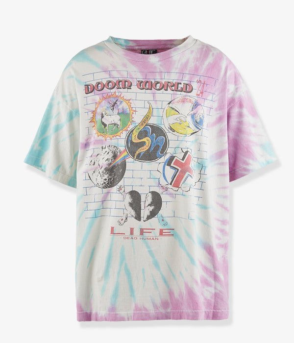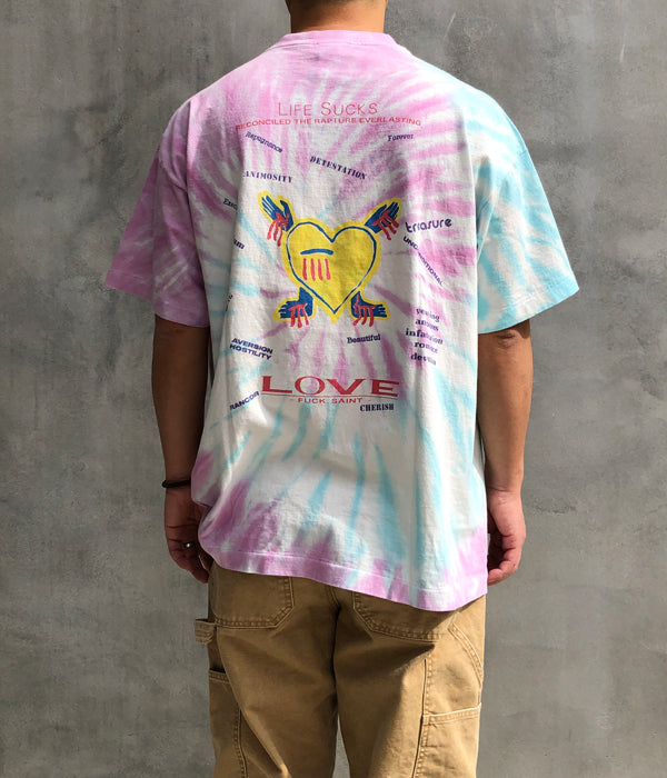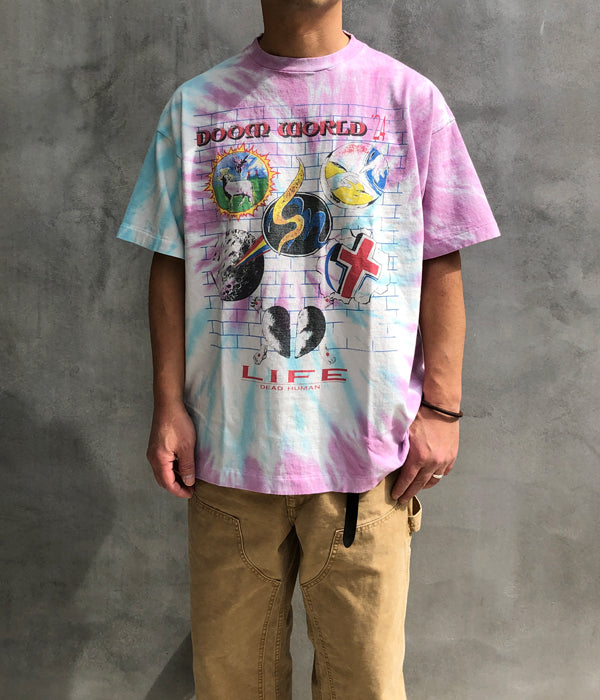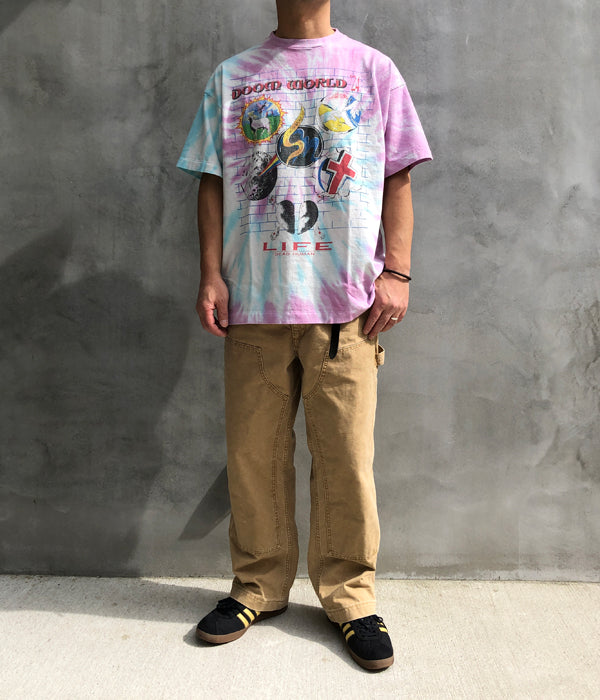 SAINT MICHAELから、LM_SS TEE/DOOR WRLD/TDYEが入荷しました。スタイリスト大久保篤志とのコラボレーションデザインによる半袖Tシャツ。前後両面のアイコニックなグラフィック、褪色したタイダイ染めボディによるヴィンテージ感と、フェード感のあるプリントの質感がポイント。