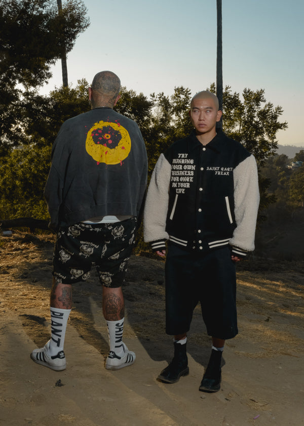 SAINT MICHAELから、LMA CP_VARSITY JKTが入荷しました。Pharrell Williamsの元アシスタントであるCynthia Luが手掛けるブランドCactus Plant Flea Marketとのコラボレーションアイテム。アイコニックなスマイルマークを採用したVARSITY JKT。