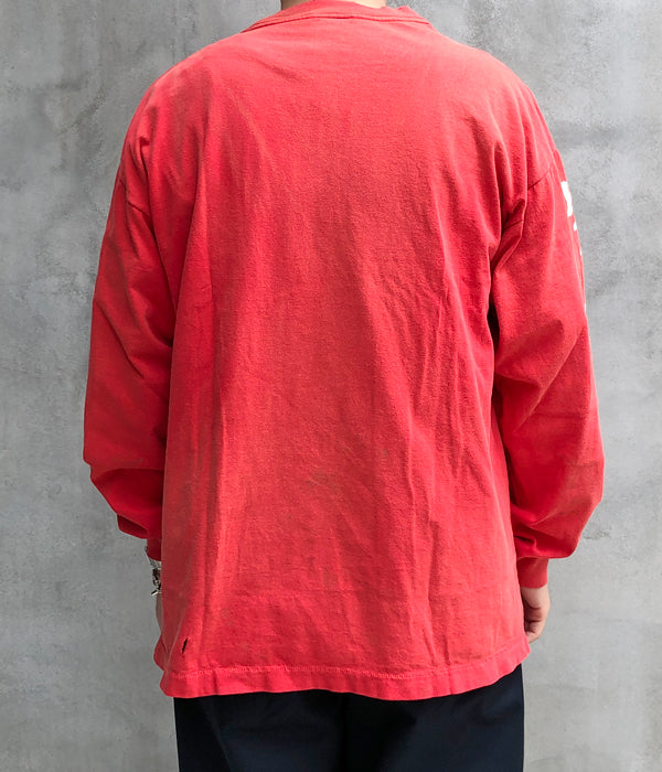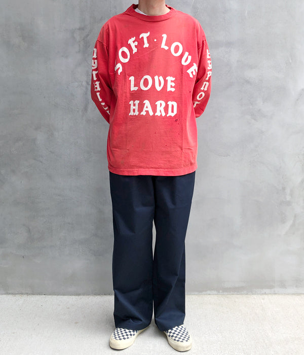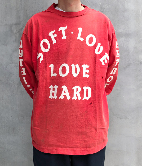SAINT MICHAELから、LS TEE/SOFT LOVE/REDが入荷しました。フロント及び、両袖に印象的なプリントデザインを施した長袖Tシャツ。絶妙なダメージ加工、褪色したヴィンテージ感と、フェード感のあるプリントの質感がポイント。
