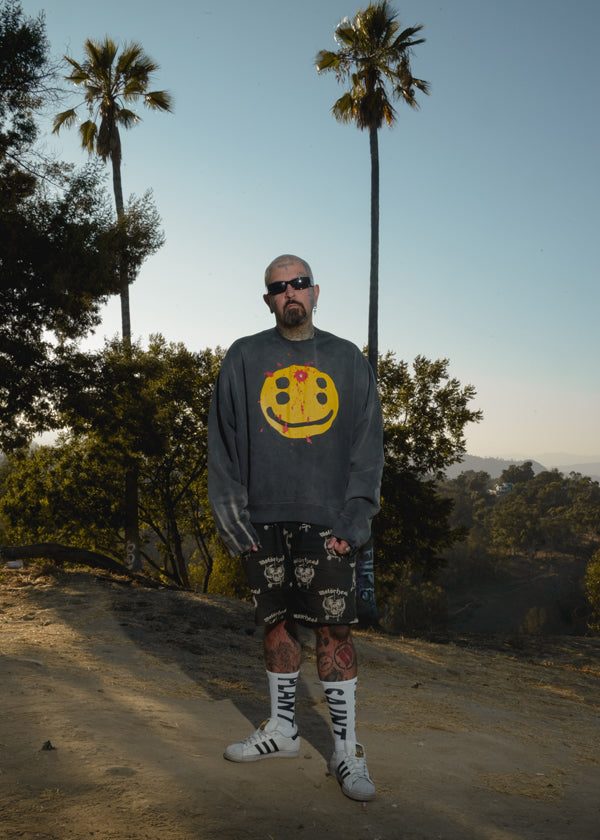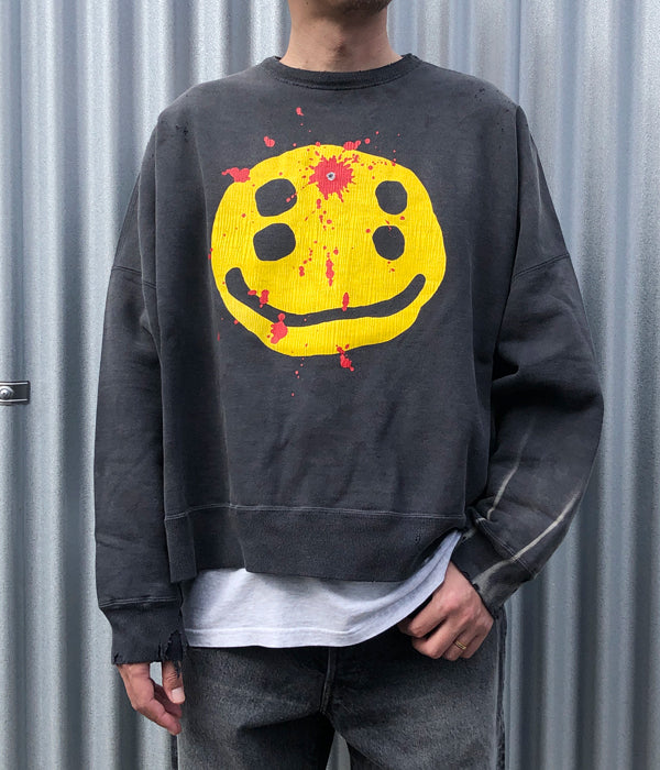 SAINT MICHAELから、SMILE CP_CREW SWTが入荷しました。Pharrell Williamsの元アシスタントであるCynthia Luが手掛けるブランドCactus Plant Flea Marketとのコラボレーションアイテム。アイコニックなスマイルマークを使い、ハードなダメージ加工を施したスウェット。