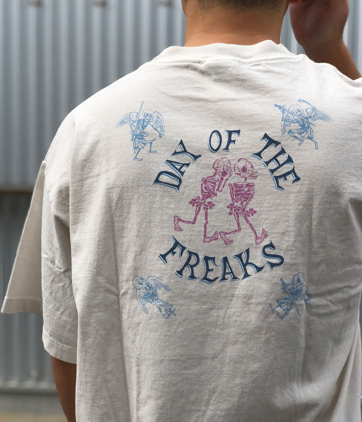 SAINT MICHAELから、SS TEE/DAY OF THE FREAKS/WHTが入荷しました。両面プリントによるSS T-SHIRT。褪色したボディによるヴィンテージ感と、フェード感のあるプリントの質感がポイント。
