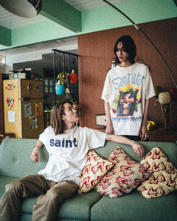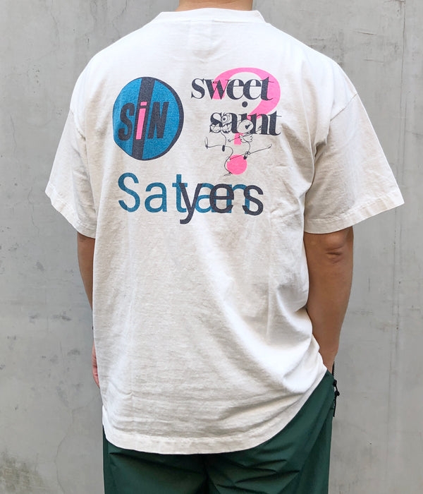 SAINT MICHAELから、SS TEE/SWEET SAINT/WHITEが入荷しました。フロントに大きく配置したsaintのロゴと、バックにデザインしたカラフルなプリントによる半袖Tシャツ。褪色したホワイトボディによるヴィンテージ感と、フェード感のあるプリントの質感がポイント。