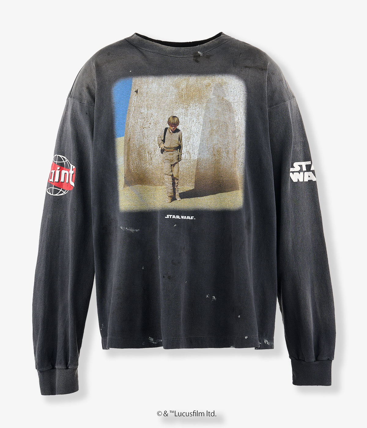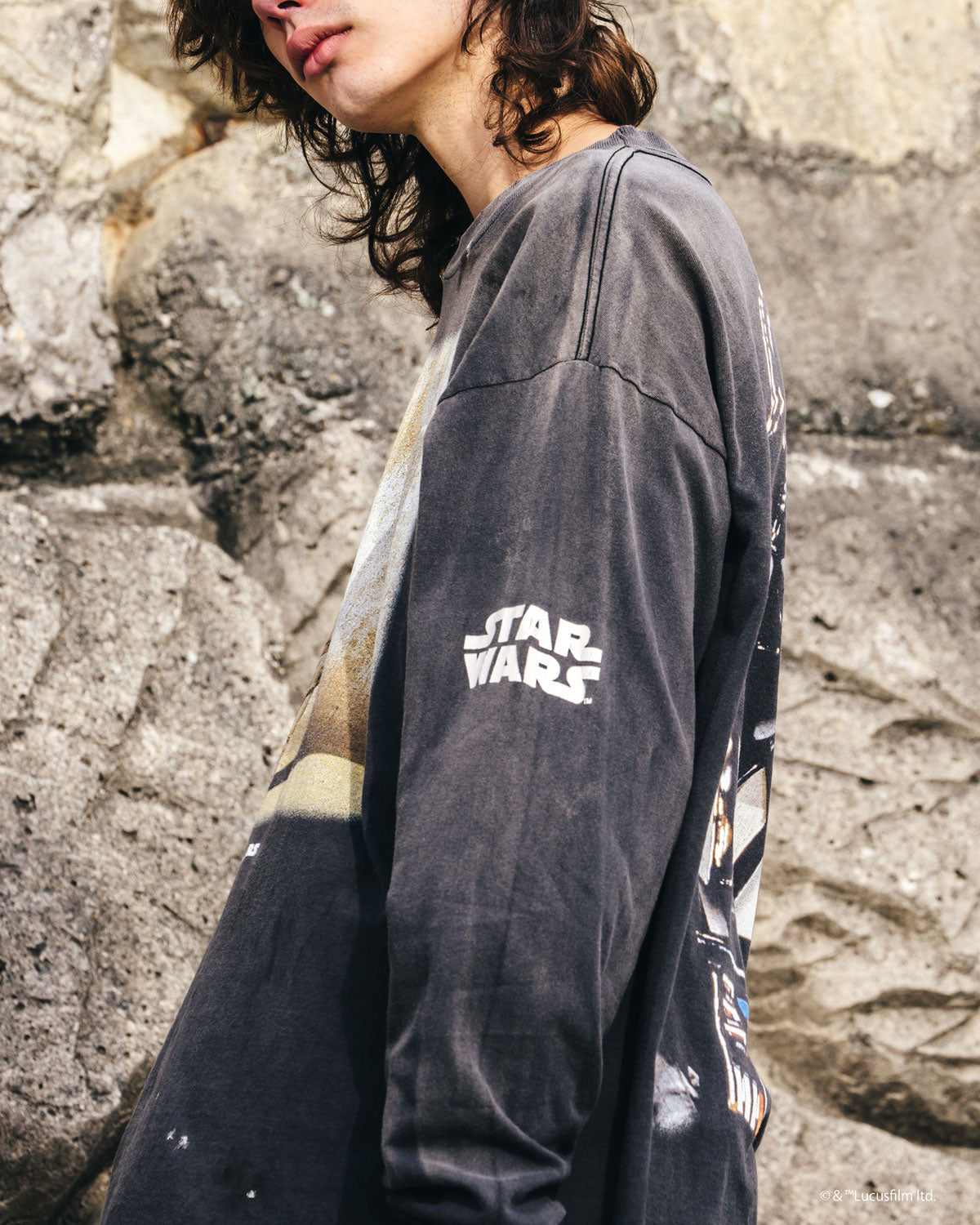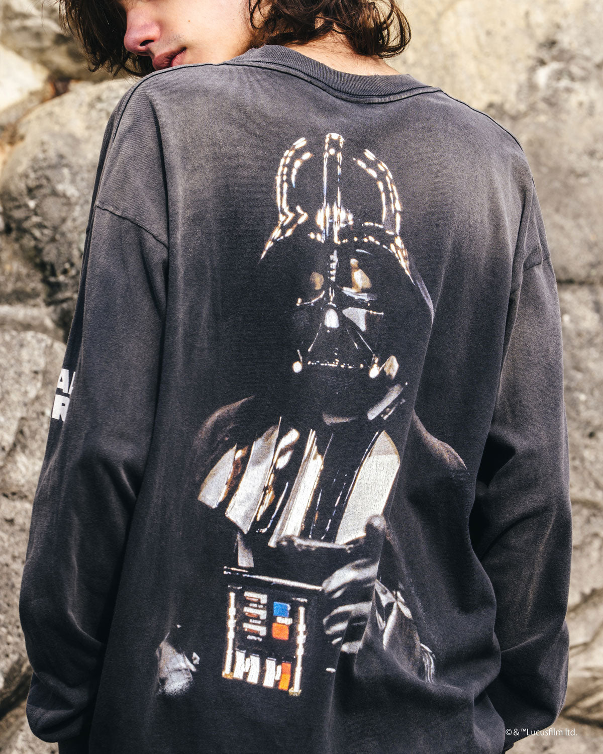 SAINT MICHAELから、SW_LS TEE /DARTHVADER/BLACKが入荷しました。©SAINT MxxxxxxとSTAR WARSとの新たなコレクションが発売。1999年に公開された新三部作の一作目『STAR WARS Episode I / The Phantom Menace』をテーマにしたアイテムを展開します。「アナキン・スカイウォーカー」の印象的なポスターヴィジュアルや、バックプリントには「ダース・ベイダー」を配したデザインを発表。「N-1スターファイター」のビジュアルを採用したTシャツは、今シーズン最大の版数を誇り、本来プリントをすることが大変難しい脇下に至るまで贅沢にプリントを施しています。さらに手作業による汚しの加工など、©SAINT Mxxxxxxらしさを加えた特別なアイテムが完成しました。
