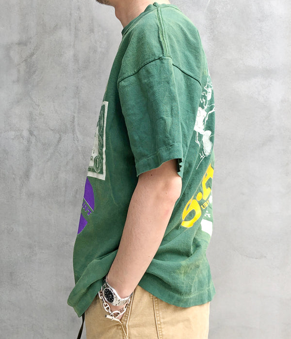 SAINT MICHAELから、SW_SS TEE/SAINT CLAN/GRNが入荷しました。Sean Wotherspoonとのコラボレーションアイテム。両面に配色を多用したデザインを大きくプリントしたディティールの半袖Tシャツ。褪色したヴィンテージ感と、フェード感のあるプリントの質感がポイント。
