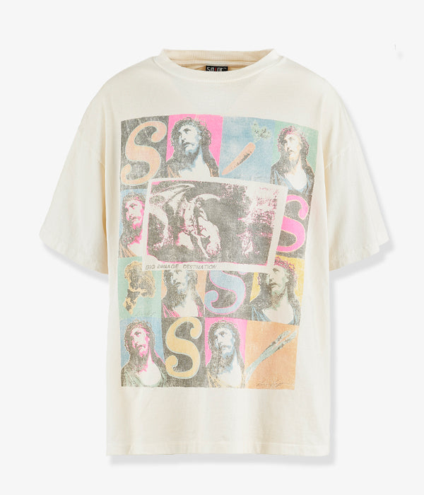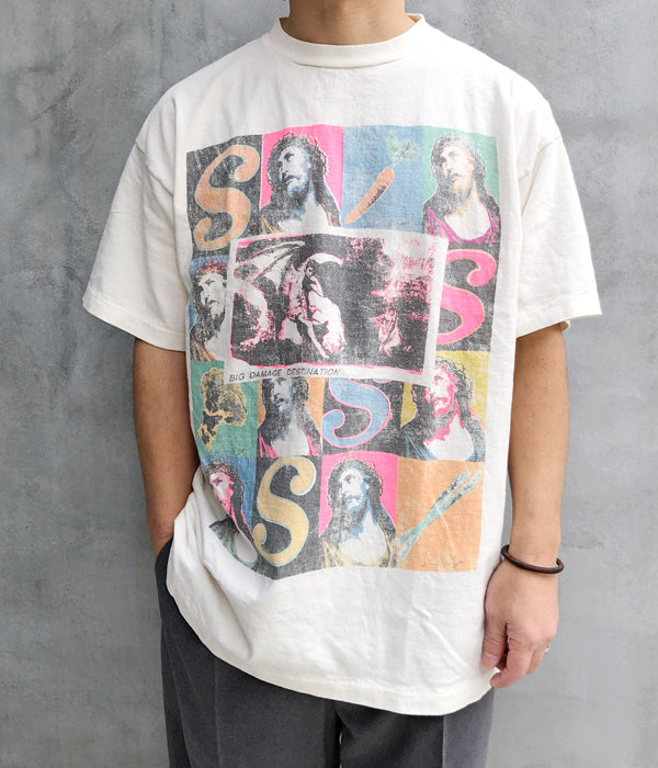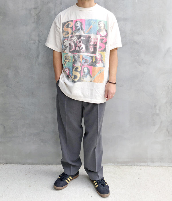 SAINT MICHAELから、SW_SS TEE/VEGES/WHITEが入荷しました。Sean Wotherspoonとのコラボレーションアイテム。フロントに配色を多用したデザインを大きくプリントしたディティールの半袖Tシャツ。褪色したヴィンテージ感と、フェード感のあるプリントの質感がポイント。