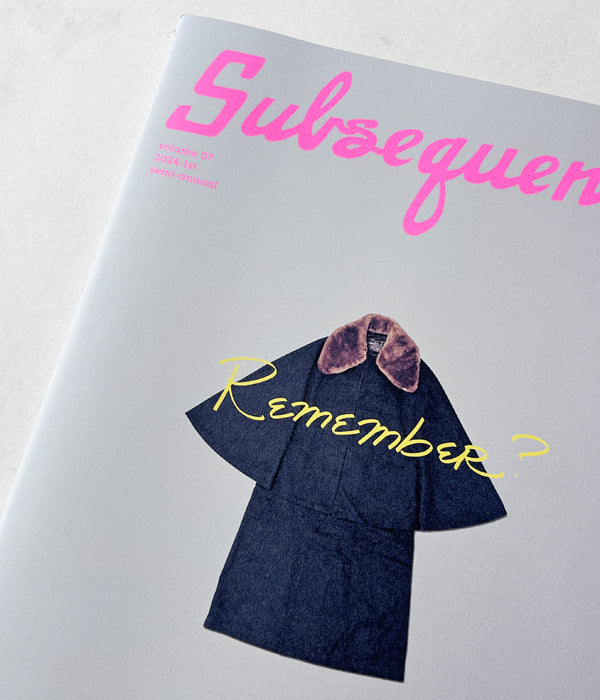 Subsequence Magazineから、volume 07が入荷しました。前号からおよそ1年ぶりに刊行された7号、巻頭特集としてのエッセイは、サウス・ウィラード店主、ライアン・コンダーによるカリフォルニア原生種の植物で自宅の庭を大家に無断でつくった話を収録。特集「Reminiscing over you(人の記憶をつなぐ)」では、ミッドセンチュリー期アメリカ・カリフォルニア州の忘れられた陶芸家、メキシコのフォークアートを愛し記録し続けた女性、フランス中南部で農具コレクションを受け継ぐ家族を取材しています。今号で使用された薄いピンクの糸は「薔薇」染めによるもの。