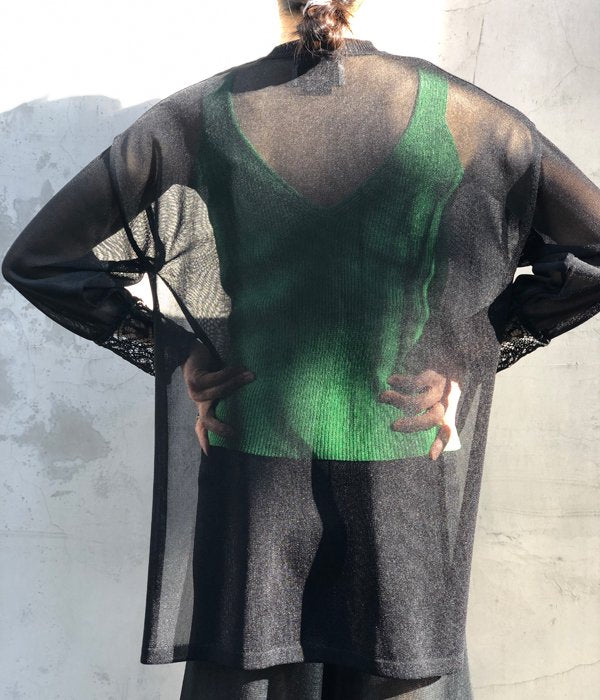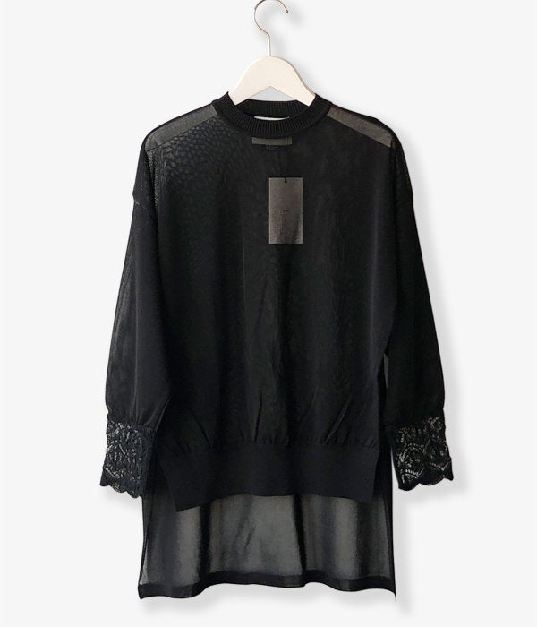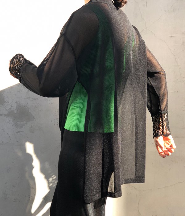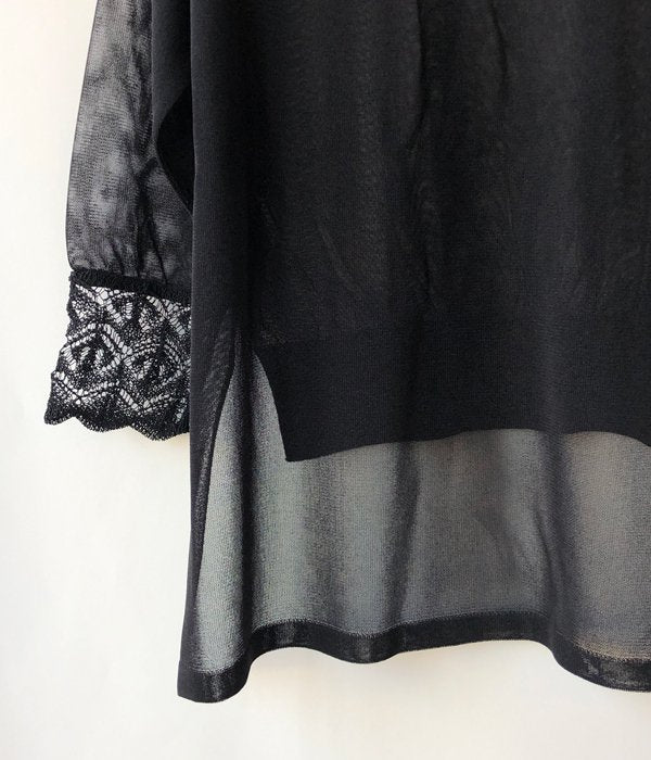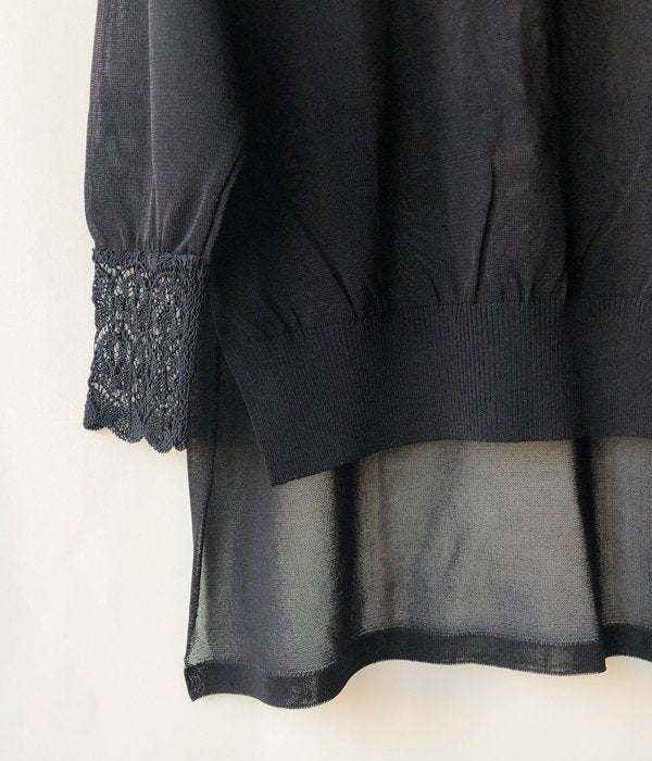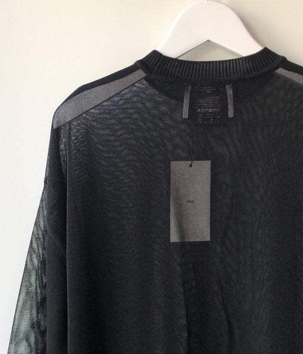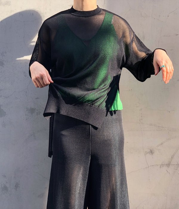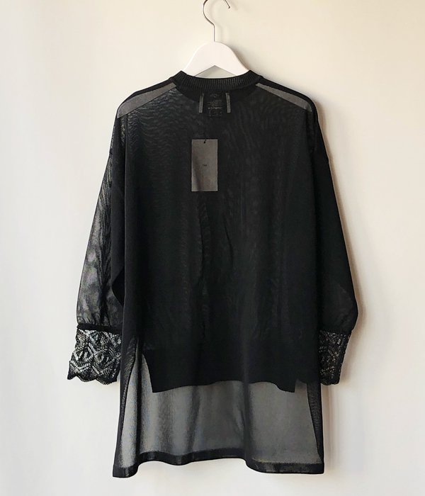 TANからANCHOR POINTALE CUFFS POが入荷しました。透け感と光沢感が上品な印象のニットプルオーバー。さらりとした冷感のある素材を活かした編地、脇に入った大胆なスリットでエアリーな着心地。繊細に透かし柄で編まれたカフスがアクセントとなっています。