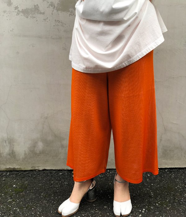 TANからDOUBLE COLOR PANTSが入荷しました。2色のジャガードで編み、重ねた色が透けて見えるような構造の生地を使用。品のある光沢感を持つサラっとした冷感素材で心地良い肌ざわり。裏地は全てサックスブルーで暑い日も快適に着用できます。