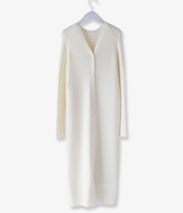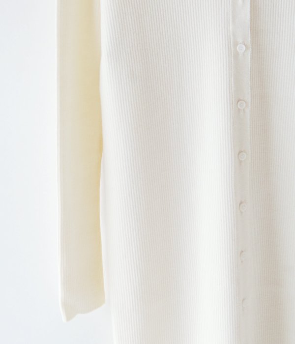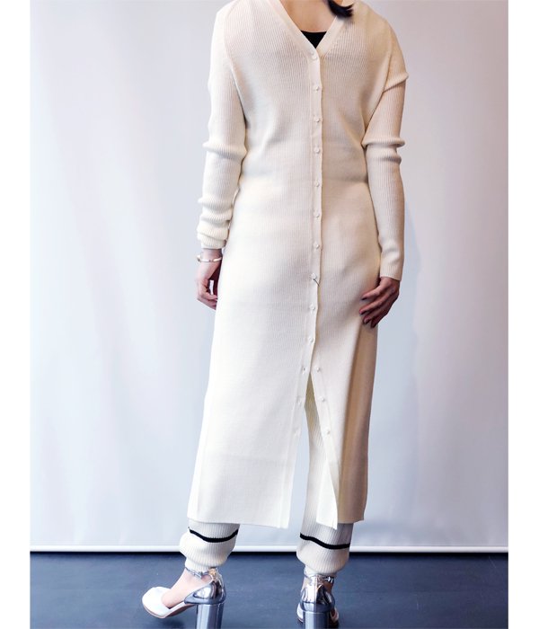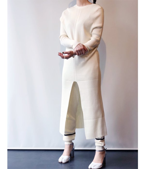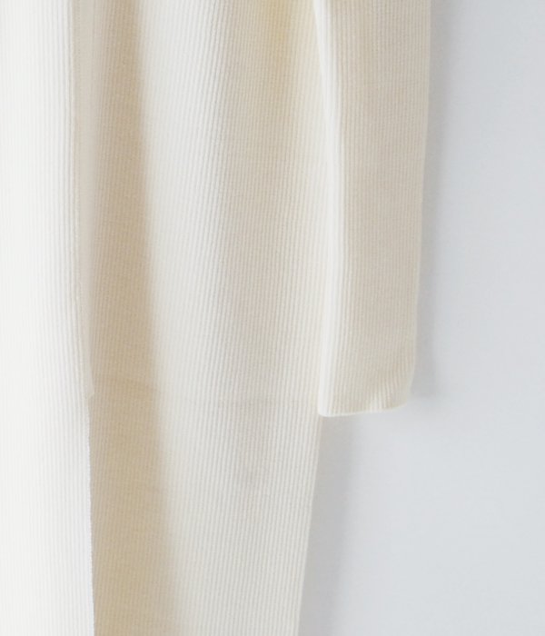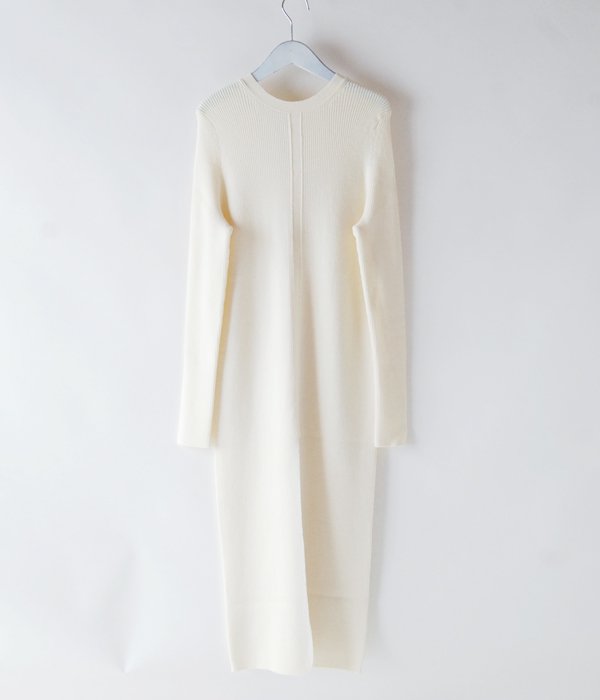 肌ざわりの滑らかなウール糸を使用し作られたロングリブワンピース。リブのラインがすっきり綺麗な縦長シルエットに見せてくれます。前後どちらでも着用可。スリットを前に着用してパンツやレギンスをレイヤードするスタイルや同生地のTRIM WEIGHT POを重ね、立体感のある着こなしがおすすめ。