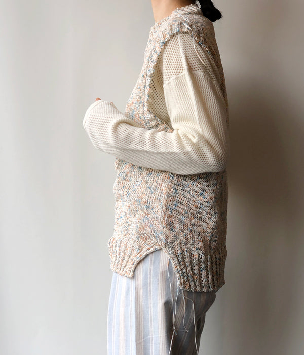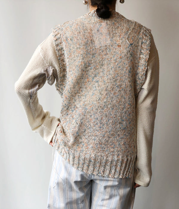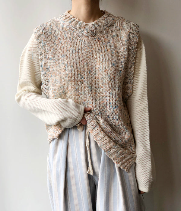 TAN/PAINTED YARN VEST(BLUE ORANGE)