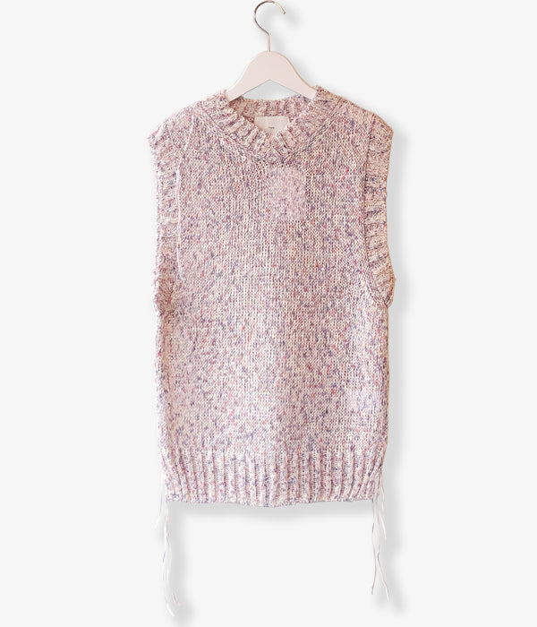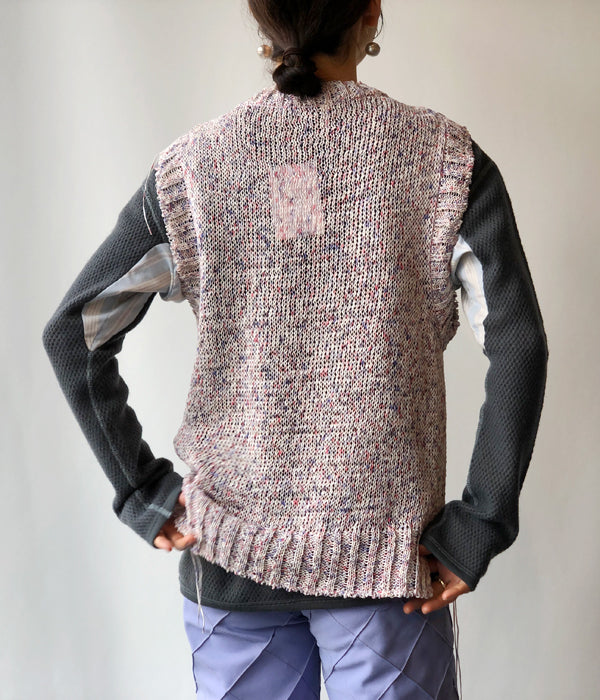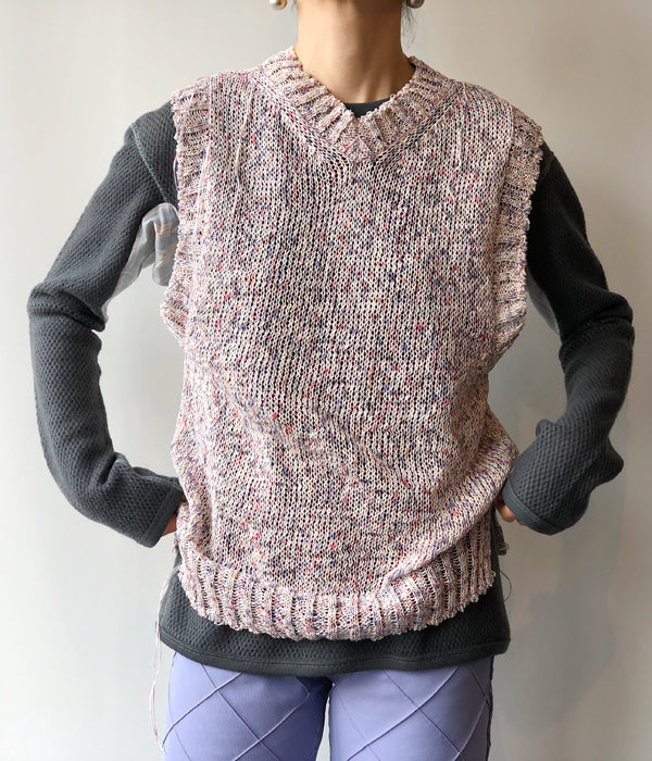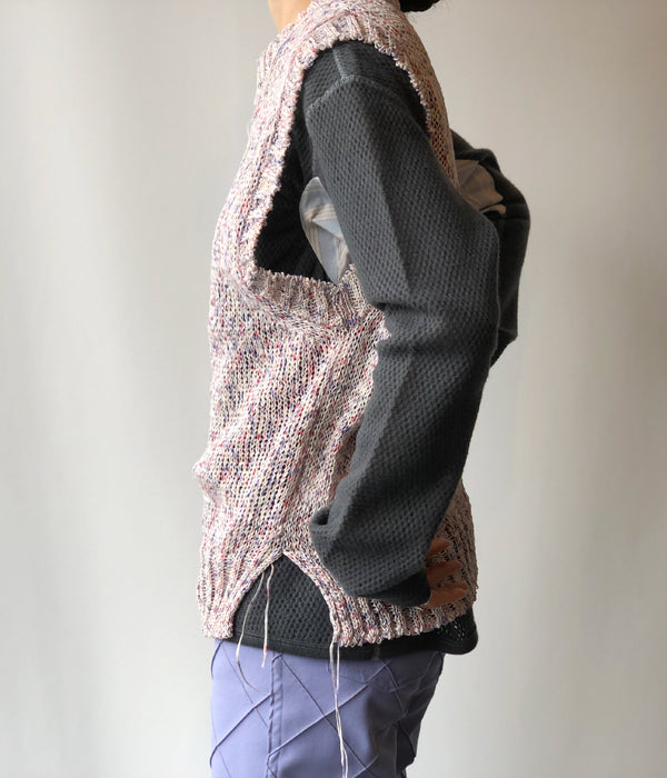 TAN/PAINTED YARN VEST(RED PURPLE)