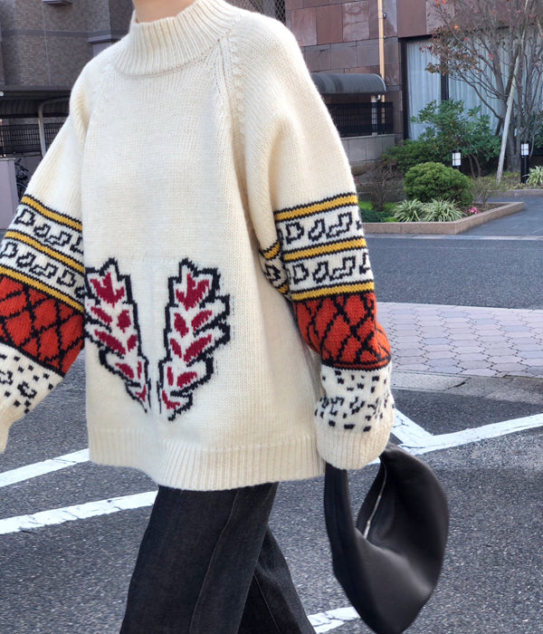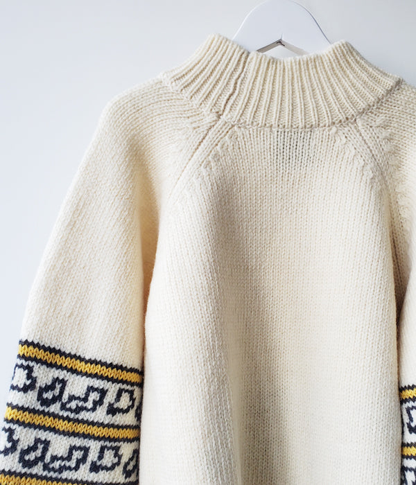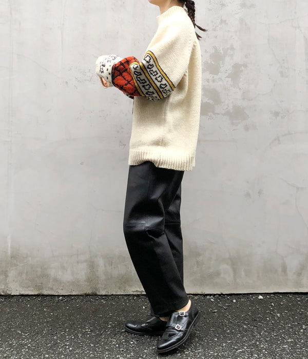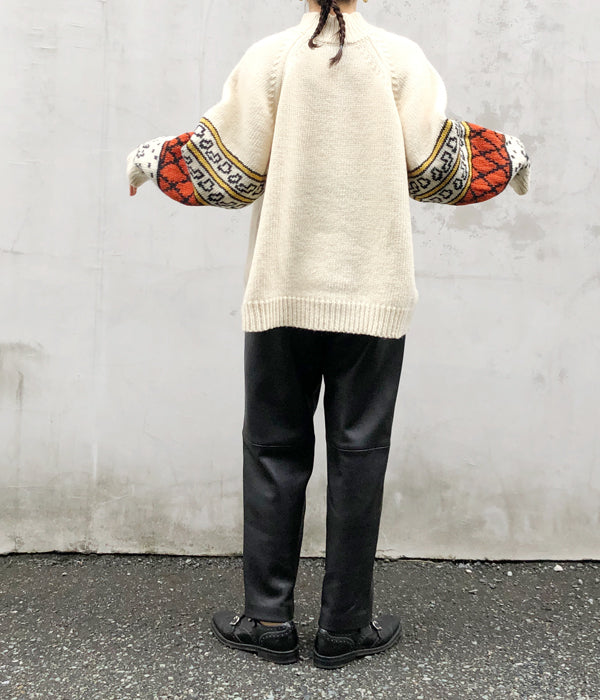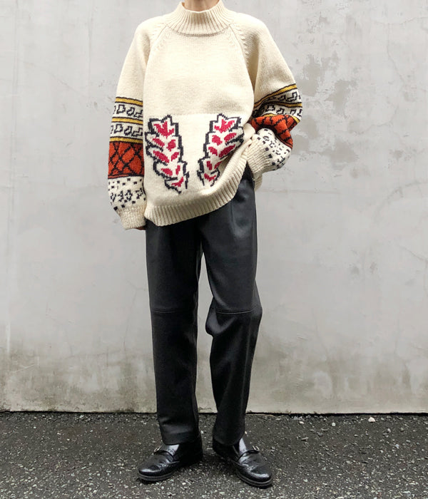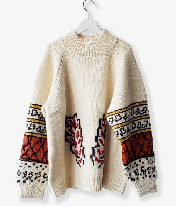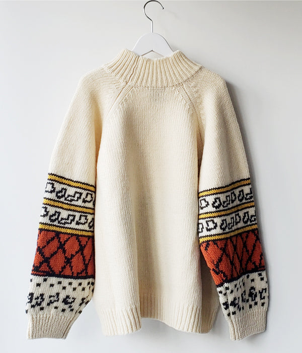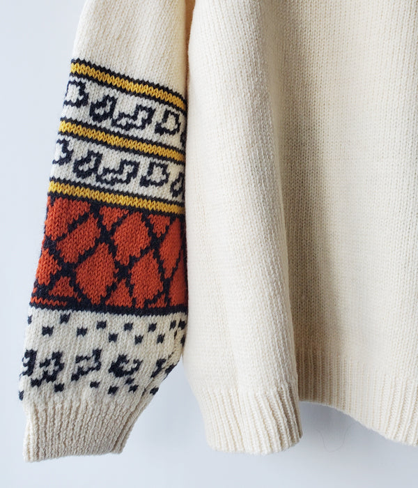 TAN/PAINTING JAQUARD PULLOVER(RAW WHITE)