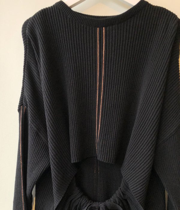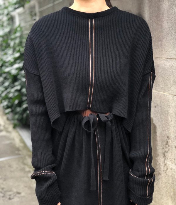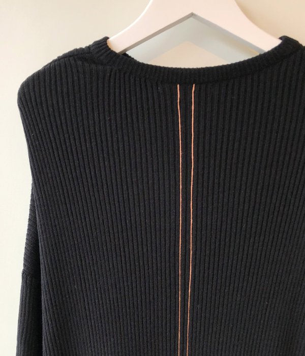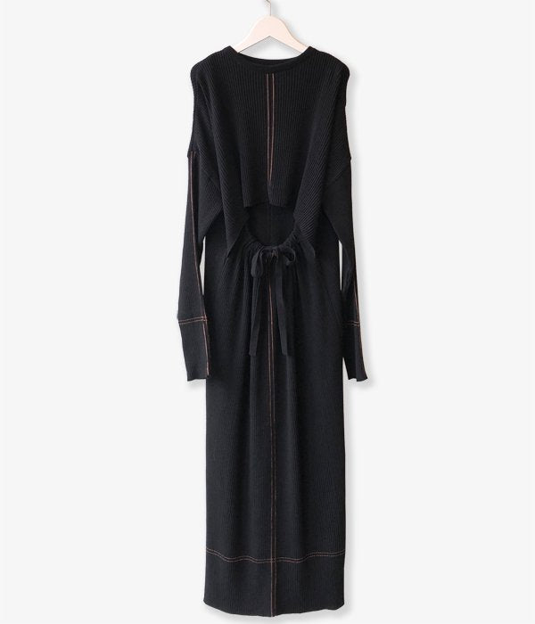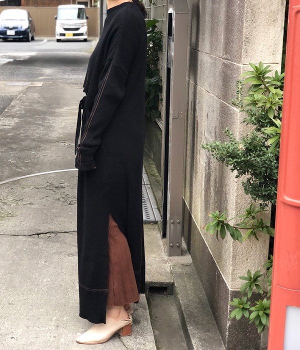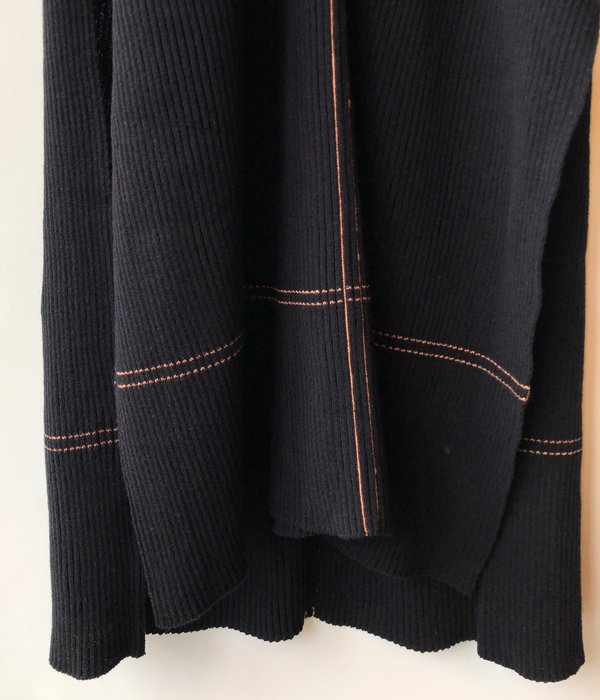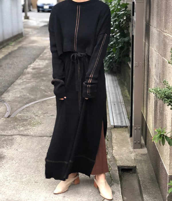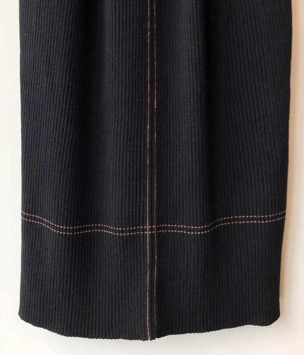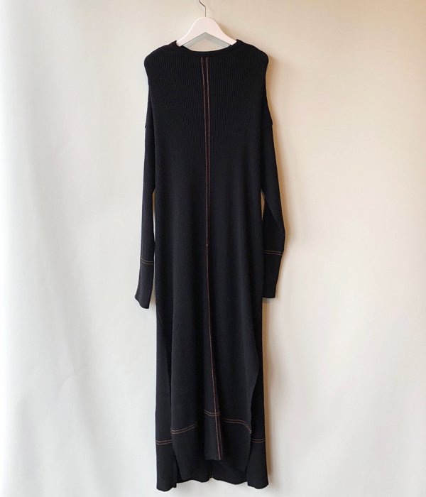 TANからSTICH RIB OP(BLACK)が入荷しました。薄手のコットンニットを使用した肌ざわりの良いリブニットドレス。ウエストのスリット、縦横に走る手の込んだカラーチェーンステッチがデザインのポイント。スリットから色や柄を覗かせて、TANらしいレイヤードスタイルを楽しめる一枚です。