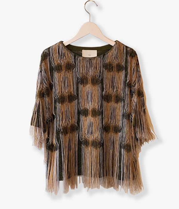 TAN/STRIPED JAQUARD TEE-SHIRT(KHAKI BLACK)