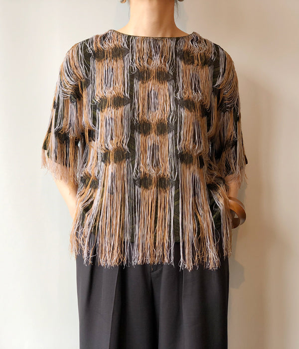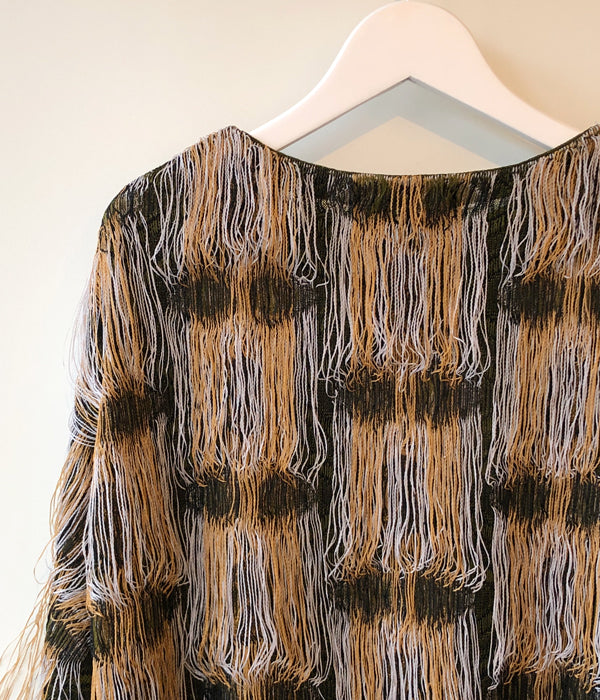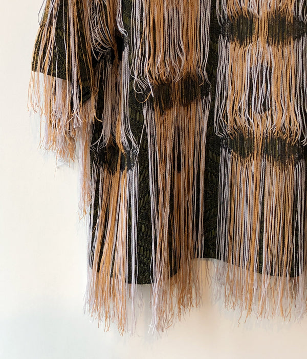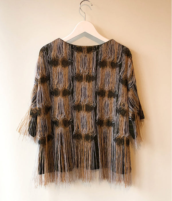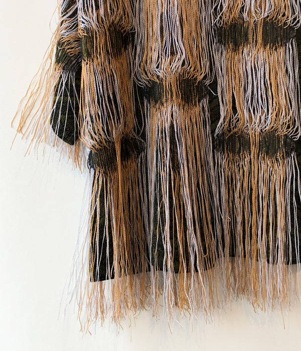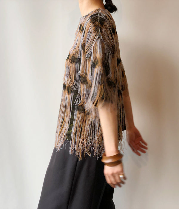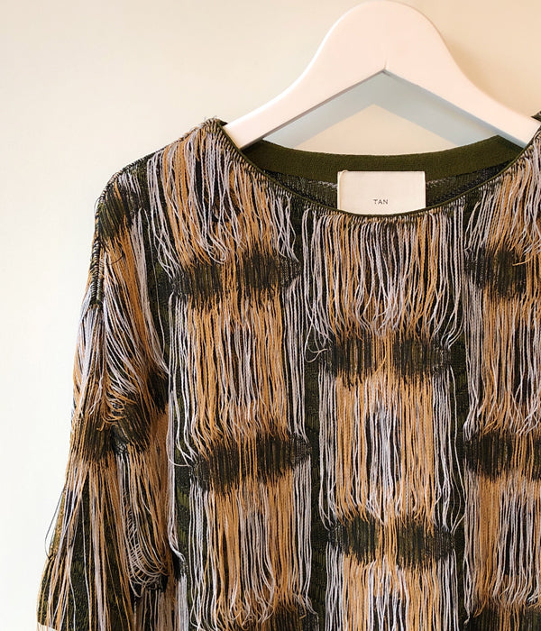 TANからSTRIPED JAQUARD TEE-SHIRTが入荷しました。今シーズンを象徴する色彩と、流線的な柄となった裏ジャガード編みのITEM。絵画のようなテキスタイルは裏目を表として使用することを見越し、本来は裏にあたる表目の柄や糸の渡りに至るまでを計算し制作されています。編むことが大変難しい職人技の光る逸品です。