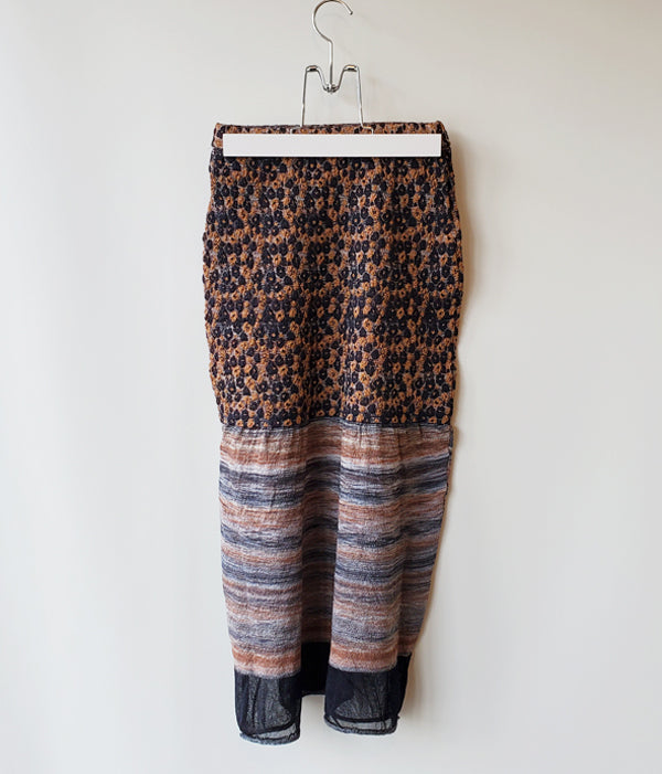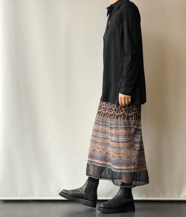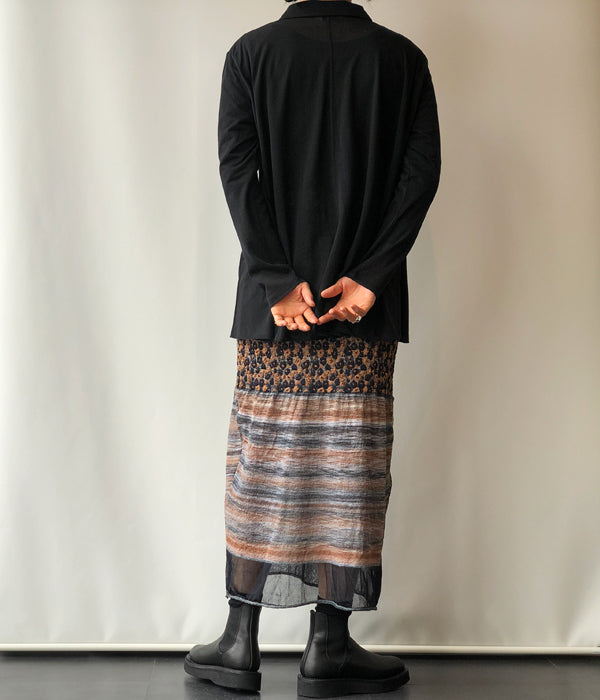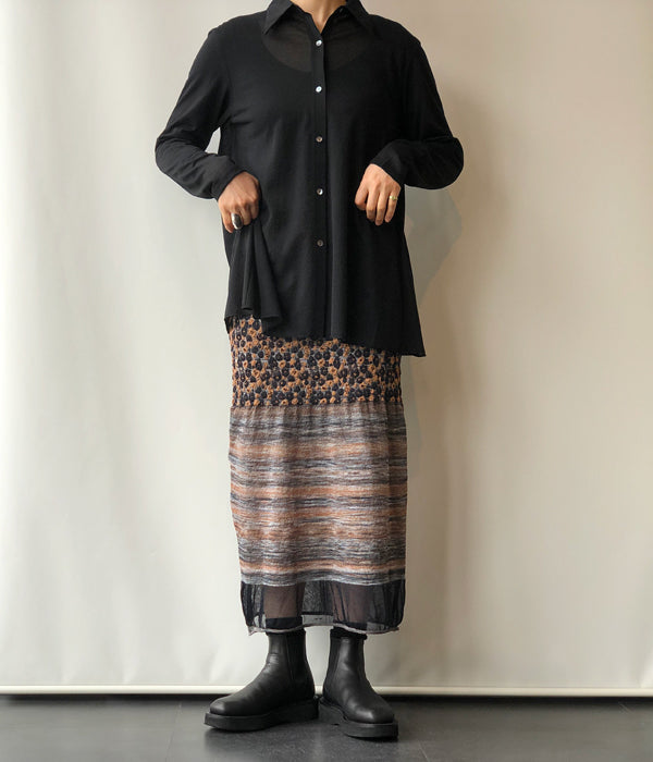 TANからTINY FLOWER PAINTING SKIRTが入荷しました。カスリの糸に小さな花柄をプラスして編み込んだ今回のコレクションを象徴するITEM。幾重にも重なった地層や植物の色彩を感じるカラーパレット、裾にかけて少しずつ透けてくるニュアンスが春夏らしく軽やかな仕上がりとなっています。