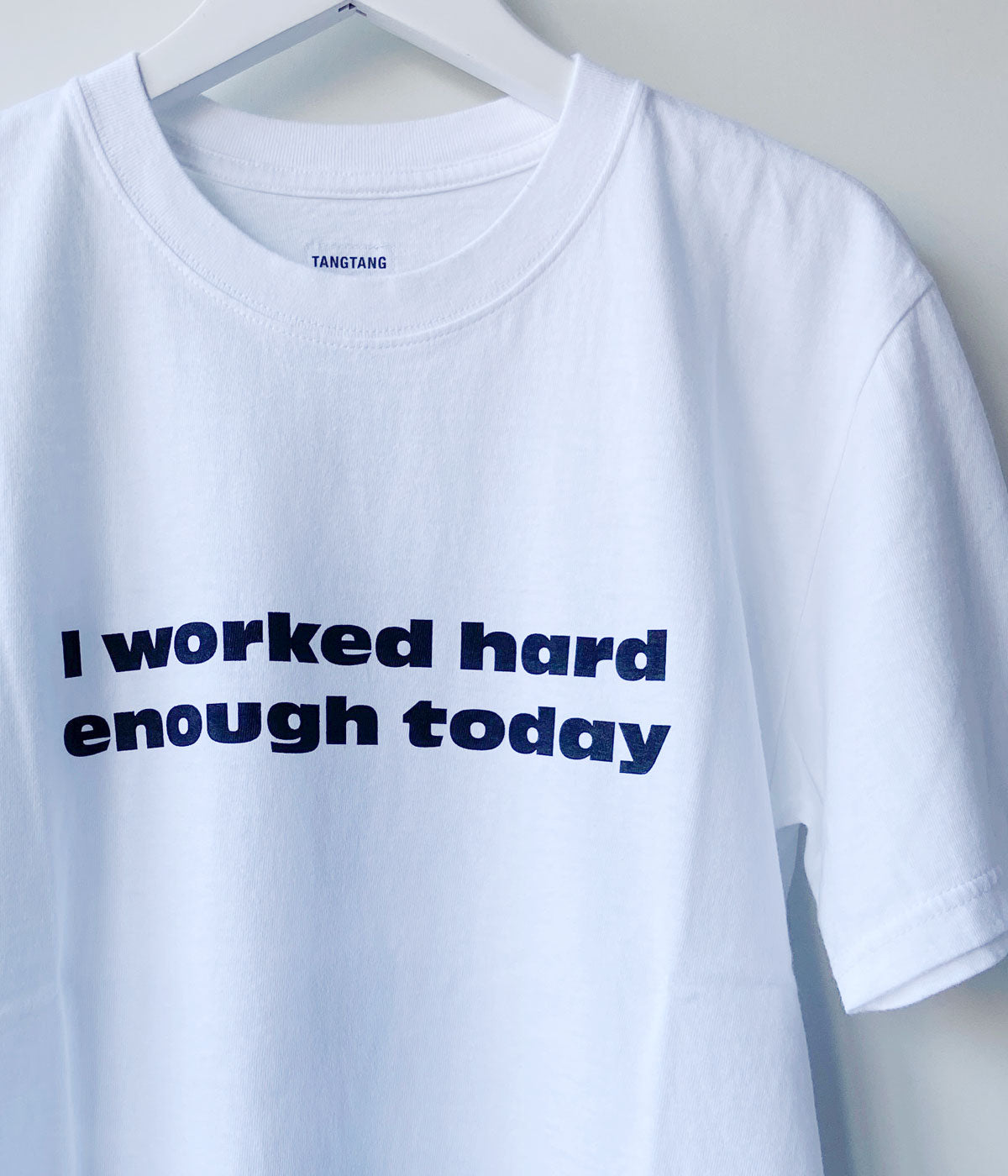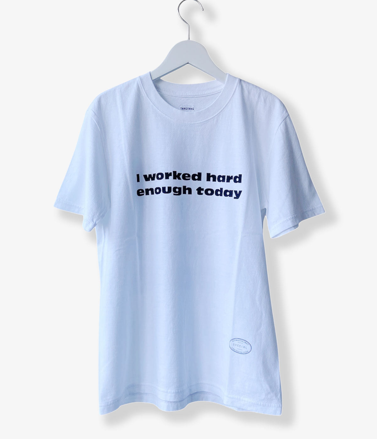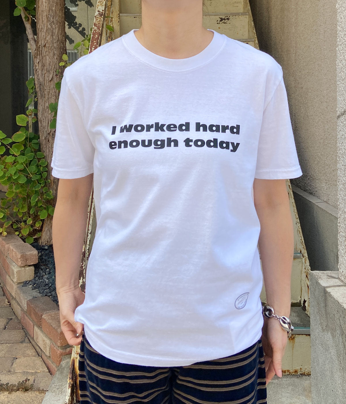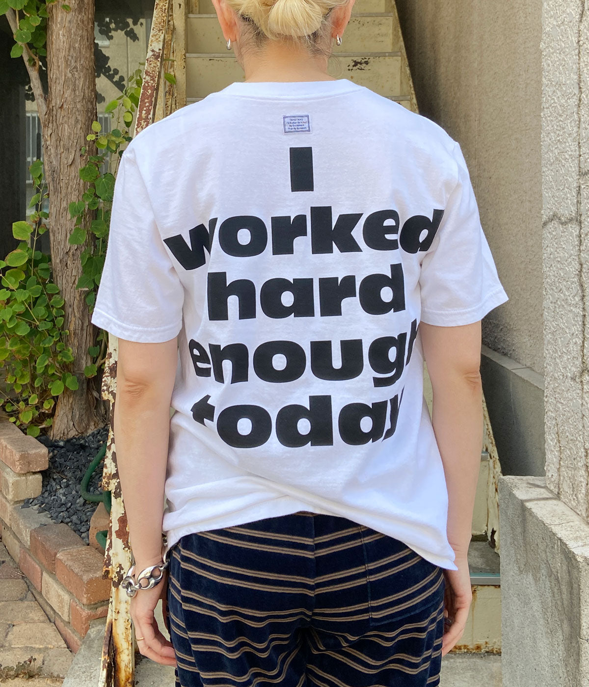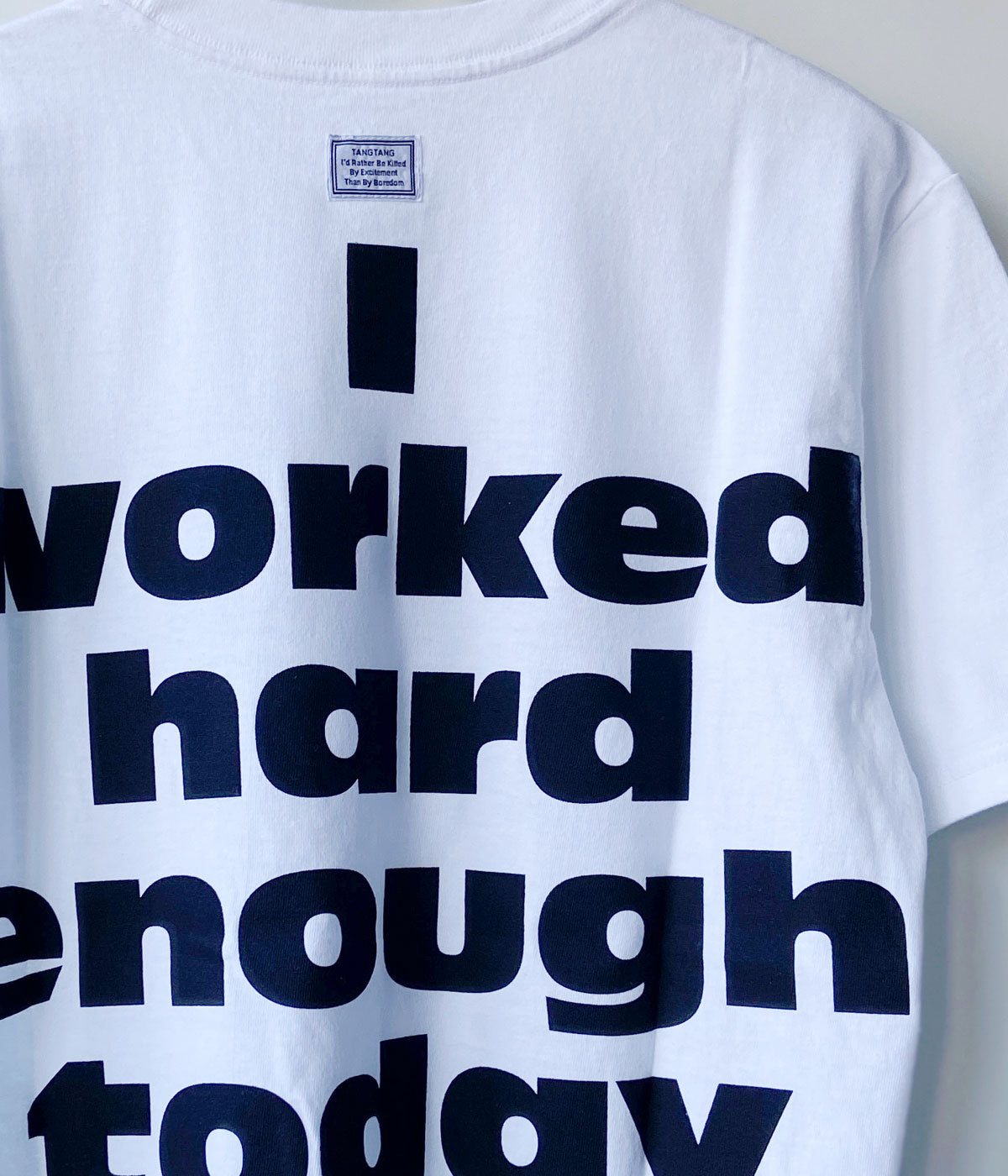 TANGTANGからALWAYS WORKED(WHITE)が入荷しました。オリジナルボディーを使用。フロント、バックともにプリントを施し、シンプルなメッセージに奥行きを感じるTEE群です。ネックバックにネームを装備。I'd Rather Be Killed By Excitement Than By Boredom。