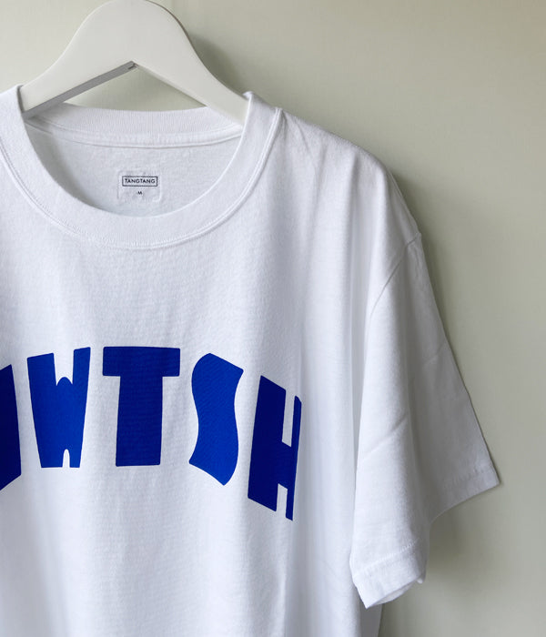 TANGTANGからBLUE NWTSH(WHITE)が入荷しました。オリジナルボディーを使用。フロント、バックともにプリントを施し、シンプルなメッセージに奥行きを感じるTEE群です。ネックバックにネームを装備。I'd Rather Be Killed By Excitement Than By Boredom。