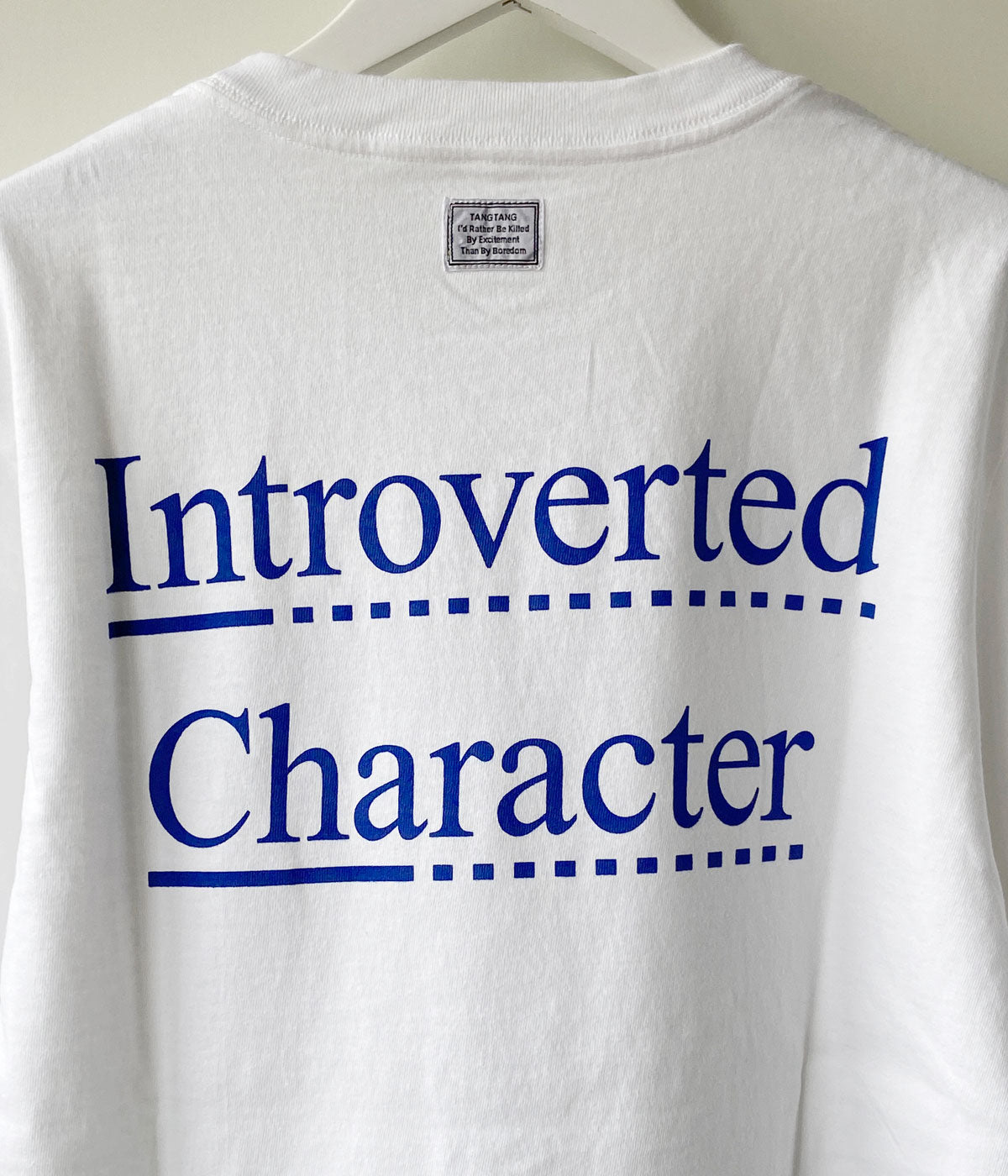 TANGTANGからIN-CHA BLUE(WHITE)が入荷しました。オリジナルボディーを使用。フロント、バックともにプリントを施し、シンプルなメッセージに奥行きを感じるTEE群です。ネックバックにネームを装備。I'd Rather Be Killed By Excitement Than By Boredom。