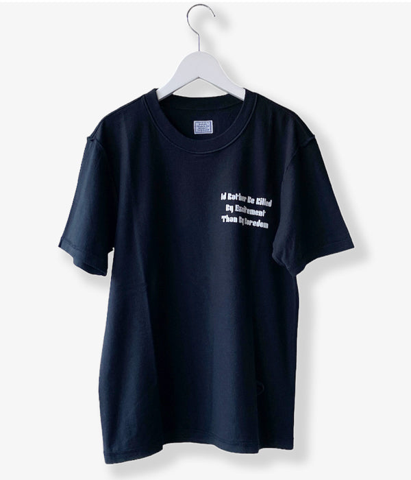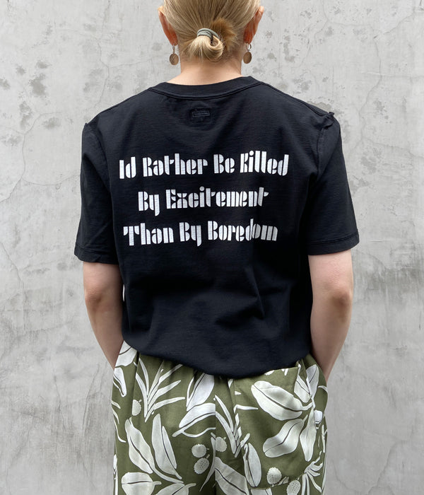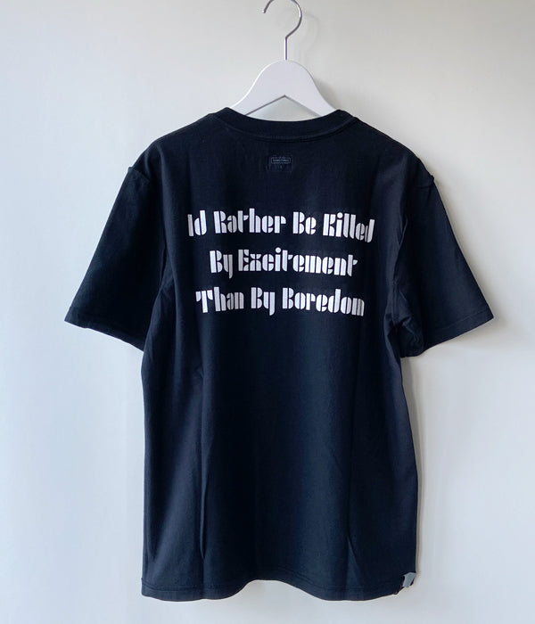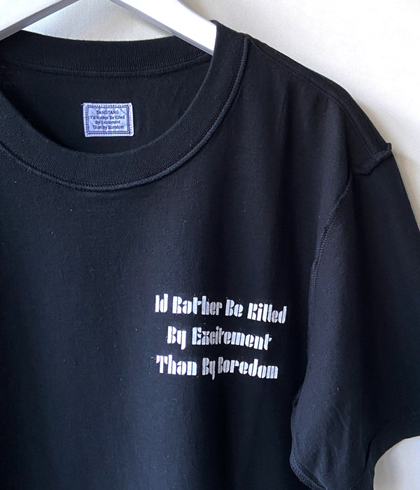 TANGTANGからINSIDEOUT / BK.WHが入荷しました。オリジナルボディーを使用。フロント、バックともにプリントを施し、シンプルなメッセージに奥行きを感じるTEE群です。ネックバックにネームを装備。リバーシブルで着用可能。I'd Rather Be Killed By Excitement Than By Boredom。