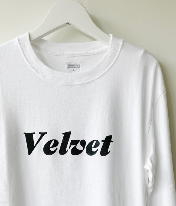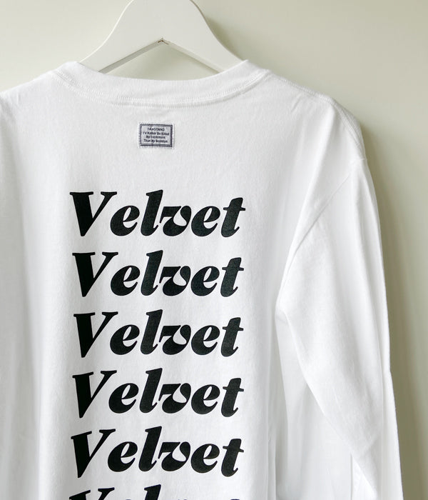 TANGTANGからSCRIPT VELVETが入荷しました。オリジナルボディーを使用。フロント、バックともにプリントを施し、シンプルなメッセージに奥行きを感じるTEE群です。ネックバックにネームを装備。I'd Rather Be Killed By Excitement Than By Boredom。