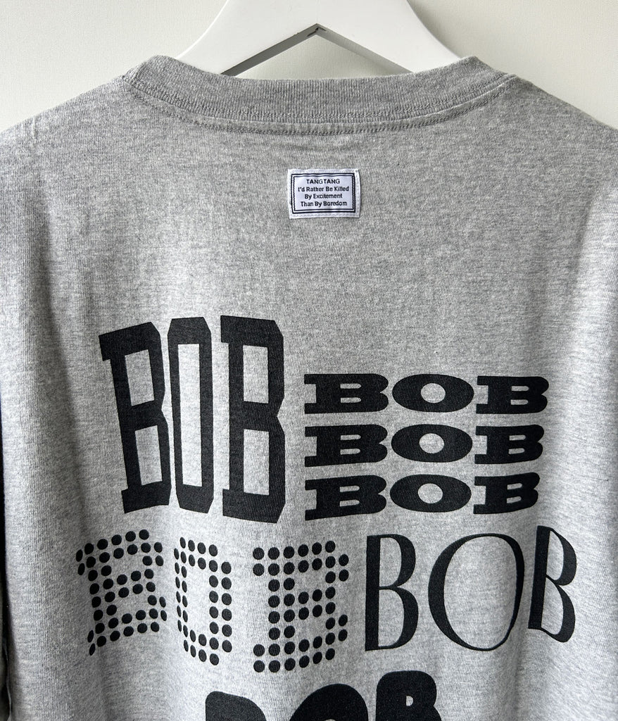 TANGTANG/SIXLOGO BOB(GRAY)が入荷しました。オリジナルボディーを使用。フロント、バックともにプリントを施し、シンプルなメッセージに奥行きを感じるTEE群です。ネックバックにネームを装備。I'd Rather Be Killed By Excitement Than By Boredom。