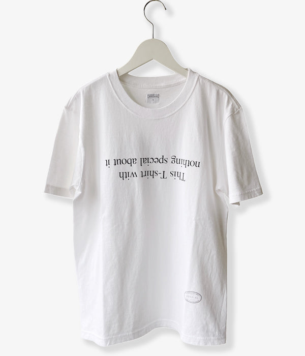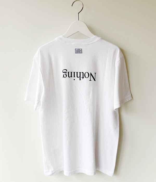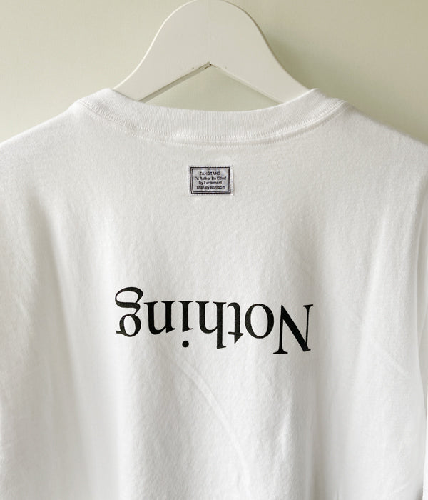 TANGTANGからUPSIDEDOWN NOTHING(WHITE)が入荷しました。オリジナルボディーを使用。フロント、バックともにプリントを施し、シンプルなメッセージに奥行きを感じるTEE群です。ネックバックにネームを装備。I'd Rather Be Killed By Excitement Than By Boredom。