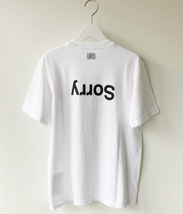 TANGTANGからUPSIDEDOWN SORRY(WHITE)が入荷しました。オリジナルボディーを使用。フロント、バックともにプリントを施し、シンプルなメッセージに奥行きを感じるTEE群です。ネックバックにネームを装備。I'd Rather Be Killed By Excitement Than By Boredom。