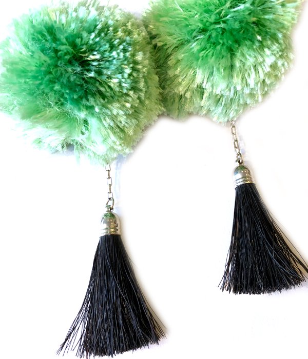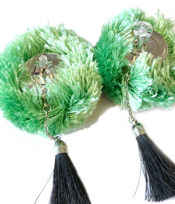 TOGA PULLAからMOTIF EARRINGS (LIGHTGREEN)が入荷しました。イヤーマフさながらのヴィジュアルとモフっとしたボリュームのあるビッグモチーフ+垂れ下がるホースヘアフリンジのタフなイメージが見事に融合したユニークなイヤリング。
