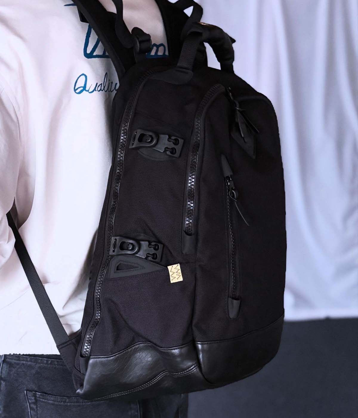 visvimから、CORDURA 20Lが入荷しました。ボトムのラムレザーは独自の風合いを出す為、表面に特殊な顔料を施したレザーを使用。背面には15インチまでのラップトップが収納可能。小型オーディオプレイヤー用の内ポケット、衣類、傘、水筒などが固定可能なクリップ、クイックアクセスが可能なサイドジッパー、本体両側面にベルクロポケット。レザーパーツ、オリジナルファスナースライダー。一家に一台のアイテム。