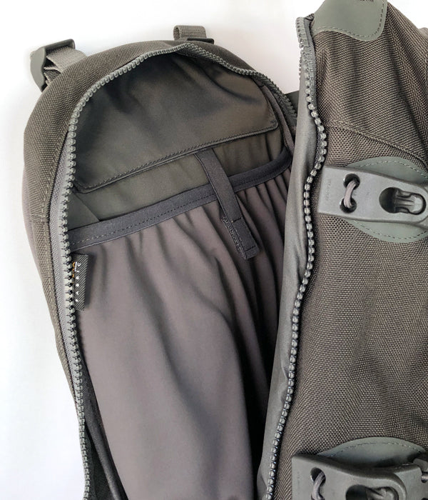 visvimから、CORDURA 20Lが入荷しました。ボトムのラムレザーは独自の風合いを出す為、表面に特殊な顔料を施したレザーを使用。背面には15インチまでのラップトップが収納可能。小型オーディオプレイヤー用の内ポケット、衣類、傘、水筒などが固定可能なクリップ、クイックアクセスが可能なサイドジッパー、本体両側面にベルクロポケット。レザーパーツ、オリジナルファスナースライダー。一家に一台のアイテム。