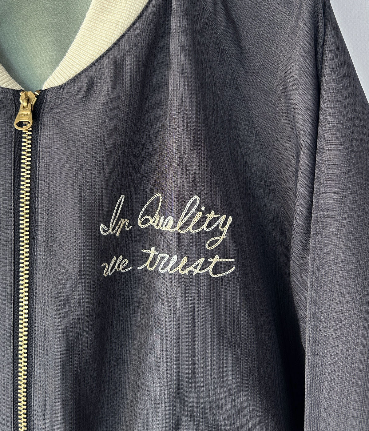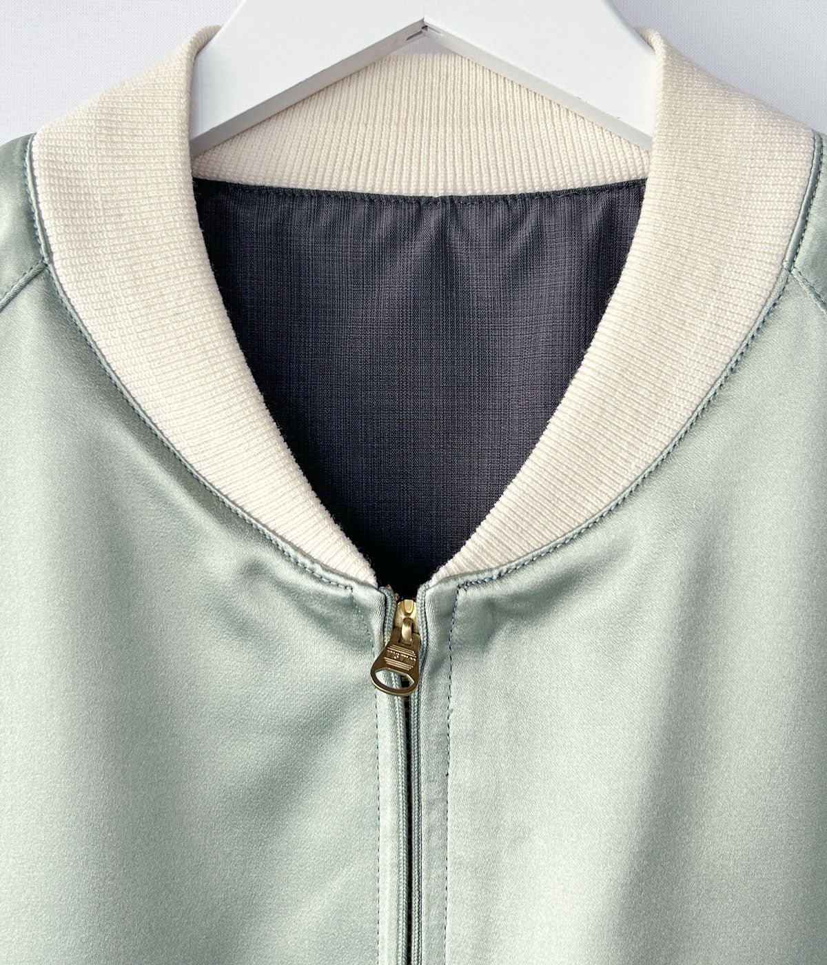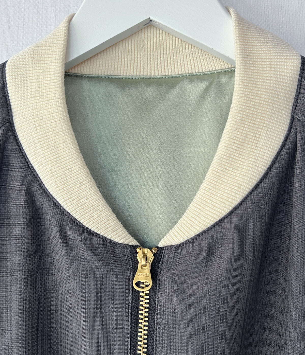 visvimから、HACKETT SWING TOP (SILK)が入荷しました。シルクで織り上げた美しい光沢のサテン生地を使用したスウィングトップ。両面着用できるリバーシブル仕様で、両面にしつらえたハンド刺繍のディテールがポイントです。襟周り、袖口、裾周りの3点リブ仕立て。すっきりショート丈のデザインに、visvim刻印入りのオリジナルのゴールドファスナーもポイント。