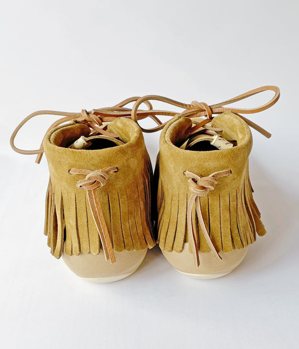 visvimから、KUIVA SHAMAN-FOLKが入荷しました。アッパーにイギリス製カーフレザーを使用し、覆い重なるレザーライニングをフリンジ調にアレンジしたデザインのモカシンシューズ。極軽EVA Phylonを使用したミッドソールから、Vibramアウトソールで快適な履き心地を実現。