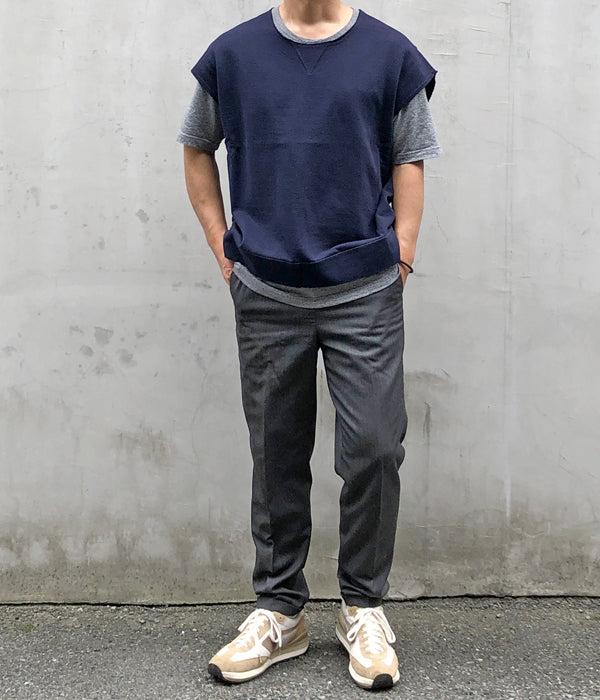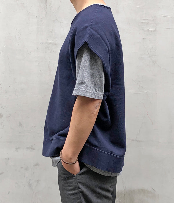 visvimから、MONDO SWEAT S/L (U.D.)が入荷しました。裏毛製のコットン素材を使用し、スリーブレスに仕立てたクルーネックスウェット。肩幅を広く設けているのでベストとはまた違った独特のシルエットをお楽しみ頂けます。ムラ染め&ダメージ加工が施された味わい深い表も魅力。