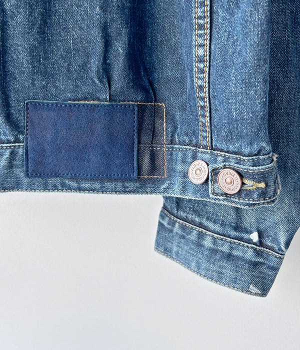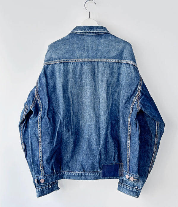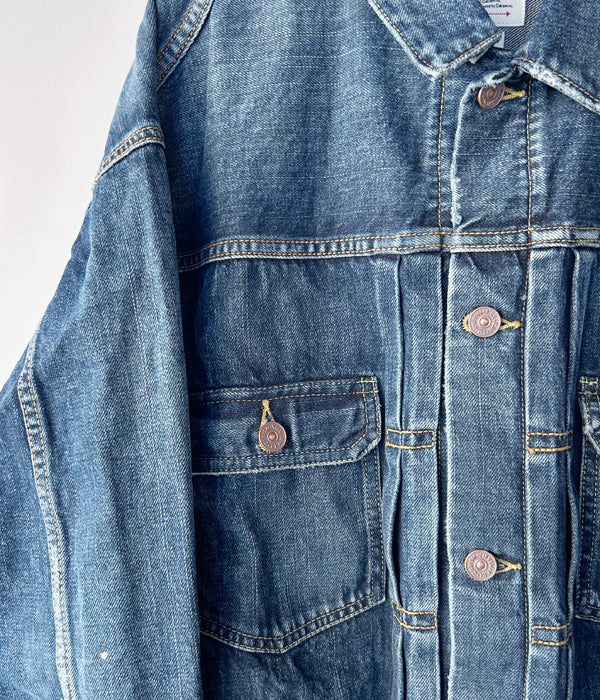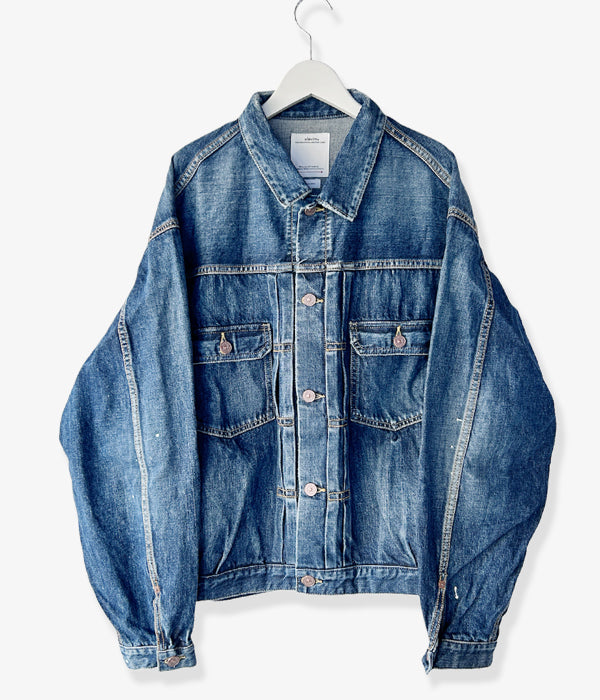 visvimから、SS 101XX JKT DMGD-1010が入荷しました。13ozのオリジナルデニムを使用し、ダメージ加工を施したデニムジャケット。フラップポケットを2か所、サイドシーム沿いにオリジナルファスナー付きポケットを設けました。絶妙なバランスを保ちながら、ゆったりとしたサイズ感に仕立てました。天然染色加工を施したディアスキンパッチをワンポイントで。