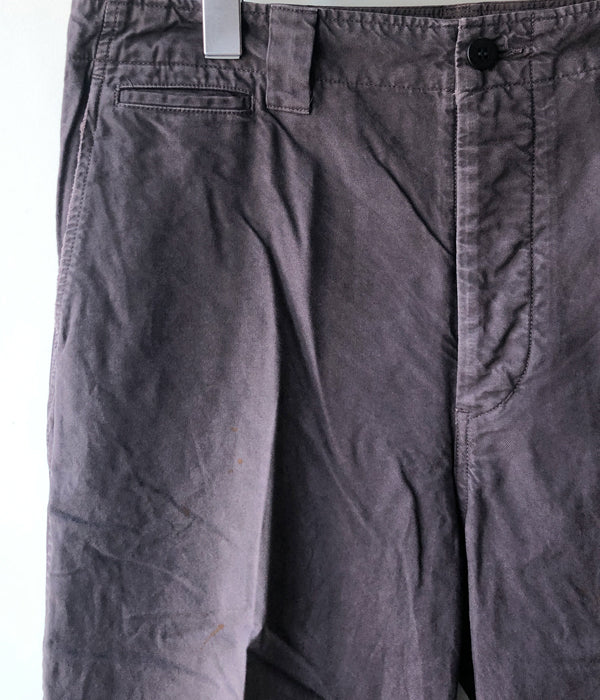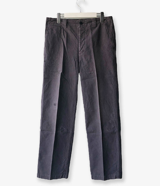visvimから、WIDE CHINO PANTS CRASHが入荷しました。高密度に織り上げたコットン製チノパンツ。ワイドなストレートシルエットに、ガーメントダイ&ダメージ加工による風合いのある表情がポイント。