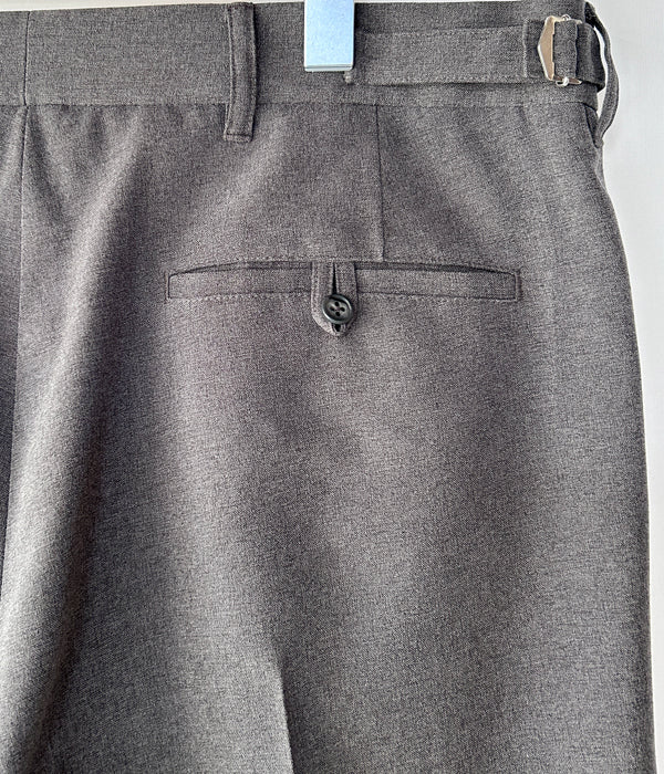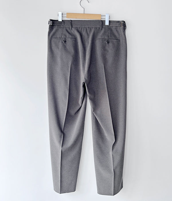 WELCOME-RAINから、1P TROUSERSが入荷しました。なめらかでとろみのあるポリエステル素材を使用したスラックスパンツです。インタックを1カ所設けたゆとりのあるシルエット、横からの流れるようなラインがとても美しいです。サイドにアジャスターを携えます。