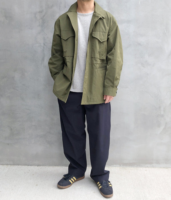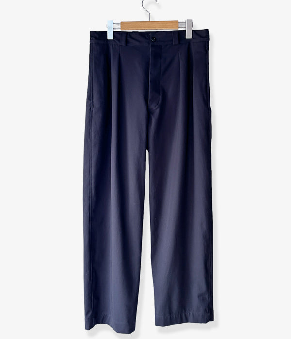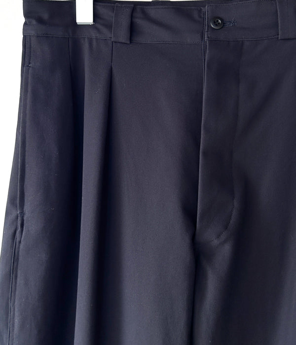 WELCOME-RAINから、CHINO TROUSERSが入荷しました。艶のある美しいコットンクロスを使用した2タック仕様のチノトラウザー。インタックによるボリュームのあるシルエットに、ボタンフライフロント、フラップ付きのバックポケットによるクラシカルなデザイン。ゆったりとしたもも周りから美しくテーパードしたシルエットに仕立てています。