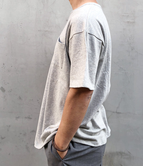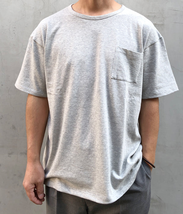 WELCOME-RAINから、SHORT SLEEVE TSH WITH POCKETが入荷しました。柔らかくて肌当たりの良いコットン天竺製の半袖Tシャツ。バインダーネックの上品な襟周りに、バストポケットを携えたシンプルなデザイン。着心地の良さが光る上質な仕立ての1着。