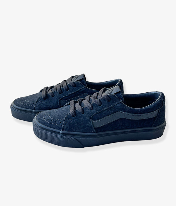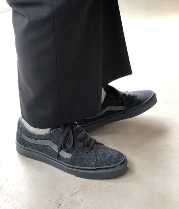 White Mountaineeringから、WM x VANS SK8-LOWが入荷しました。VANSハイカットの名作Sk8-Hiのローカットモデルをチョイスした渋い1足。ローカットながらも完成されたSk8-Hiの美しさを引き継ぐ秀逸なデザイン。今シーズンのWMオリジナルによる植物柄を全面に施し、スエードアッパーから、シューレース、ラインニング、ソールに至るまで統一感のあるカラーリングによるまとまりの良い雰囲気が魅力です。