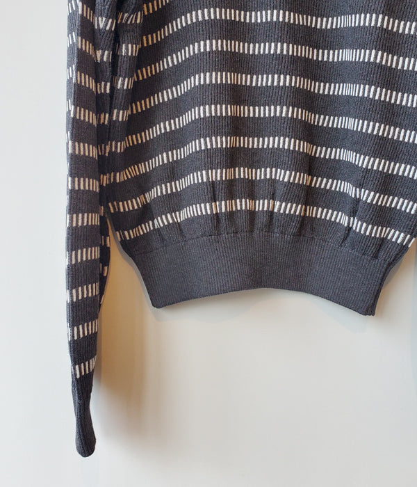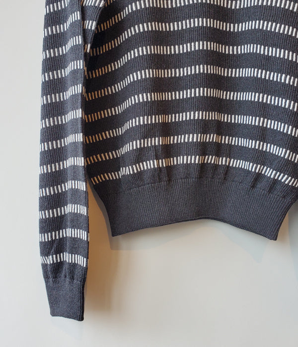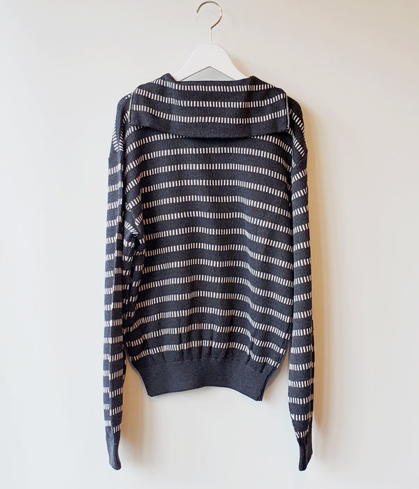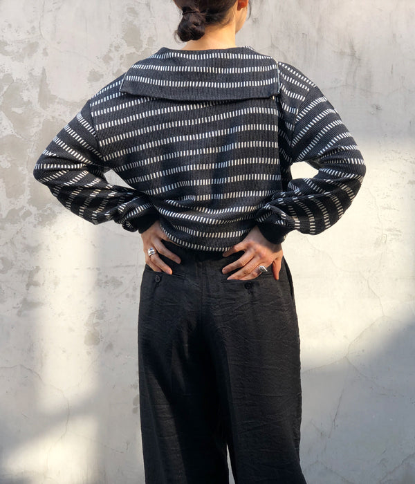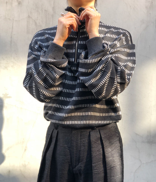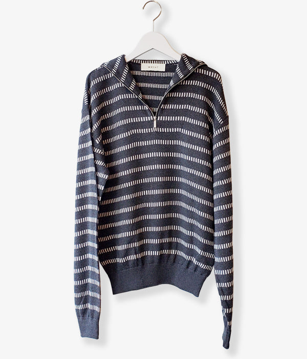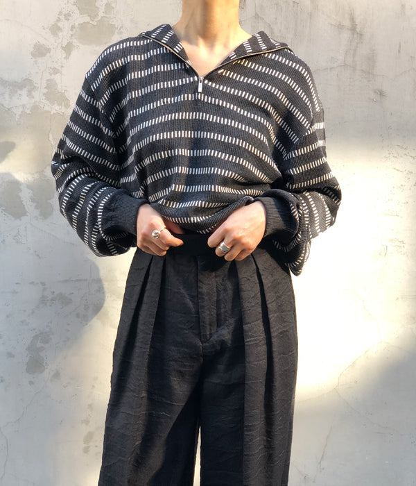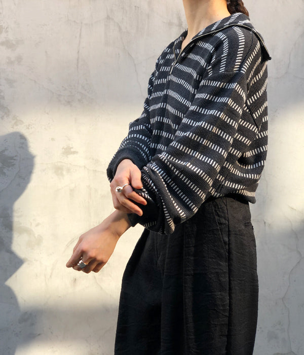 WRYHTからBASQUE HALF ZIP TOPが入荷しました。ニットバスクの編み地を使用したハーフジップトップ。どことなく現代ではあまり感じることの出来ないノスタルジーさを持っています。ショートレングスが新鮮で幅広い着こなしが楽しめそう。