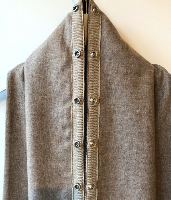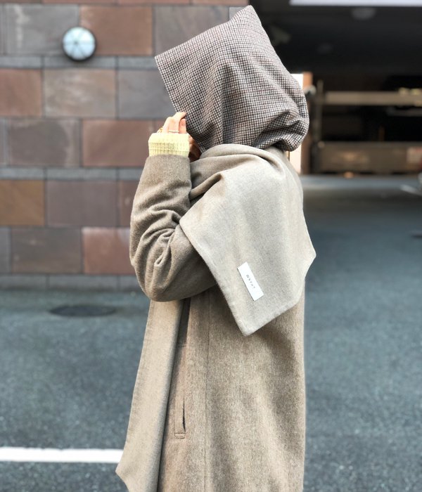 WRYHTからBEAVER HOODED SCARF(COGNAC PLAID)が入荷しました。カシミア混のオリジナルビーバークロスを使用のスカーフ。付属のスナップボタンを留めるとフーディに変身。同生地を用いたジャケット&トラウザーズと合わせて着用すると雰囲気たっぷりの着こなしに。