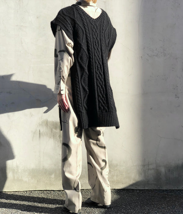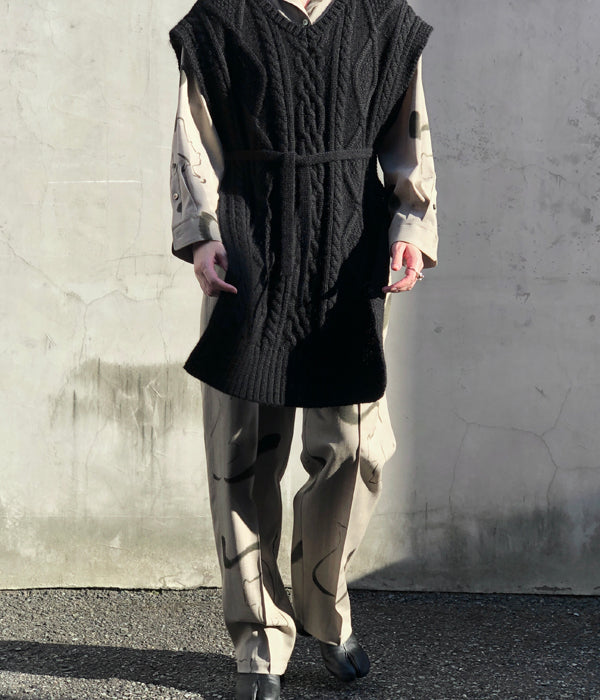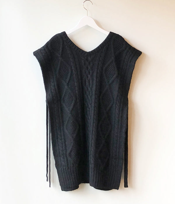 WRYHTからFISHERMAN SQUARE TOPSが入荷しました。ポンチョやケープのようなスクエアシルエットのノースリーブトップス。今シーズンは天然のアルパカを度詰めにして編み立てています。ふわっと軽く心地よい肌触りに、毛足の長い表情に温かみを感じます。付属のウエストベルトの結び方でシルエットを変えて楽しめます。