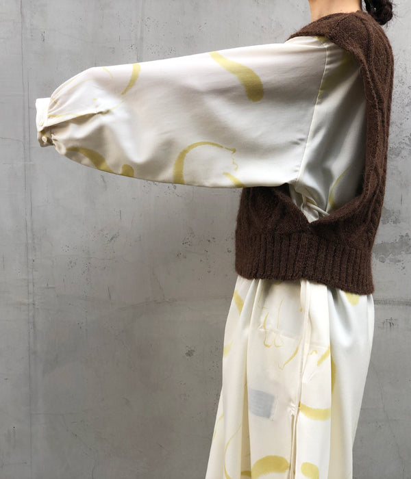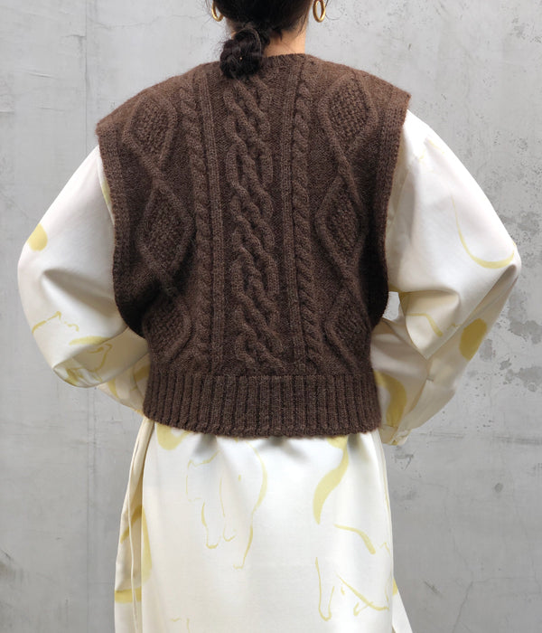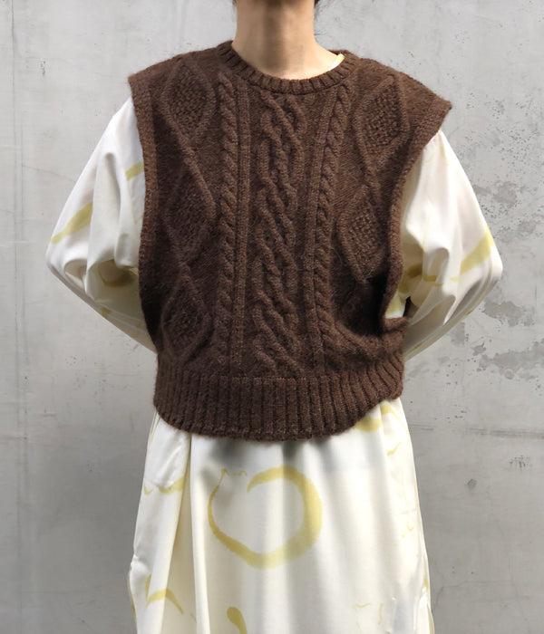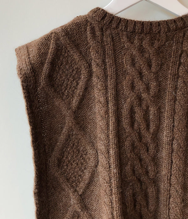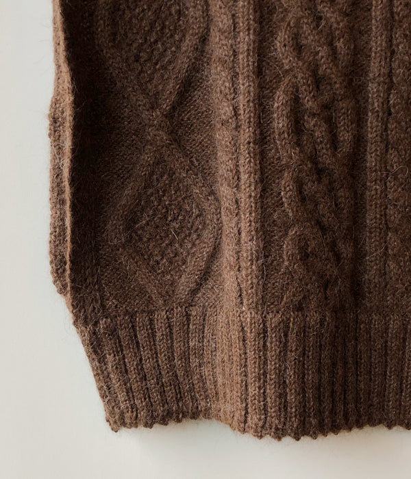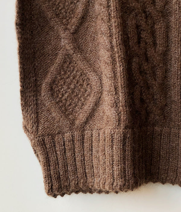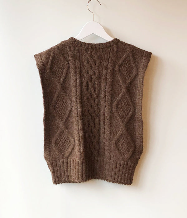 WRYHTからFISHERMAN TINY VESTが入荷しました。アームホールが無く裾までオープンになったデザインのベスト。今シーズンは天然のアルパカを度詰めにして編み立てています。心地よい肌触りに、毛足の長い表情が温かみのある雰囲気。コンパクトなフィッティングで、大きめなドレスやブラウス等と合わせてコントラストを楽しみたい一枚。