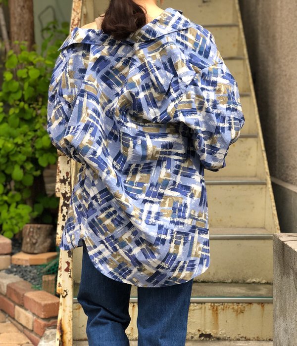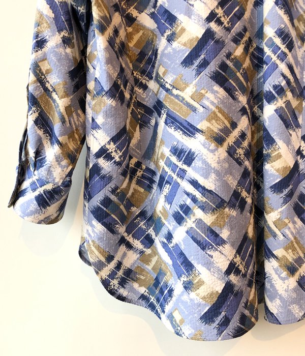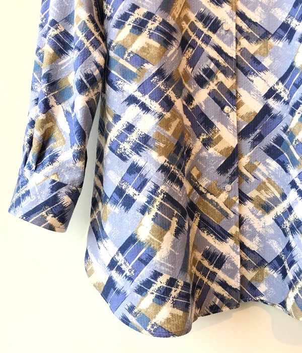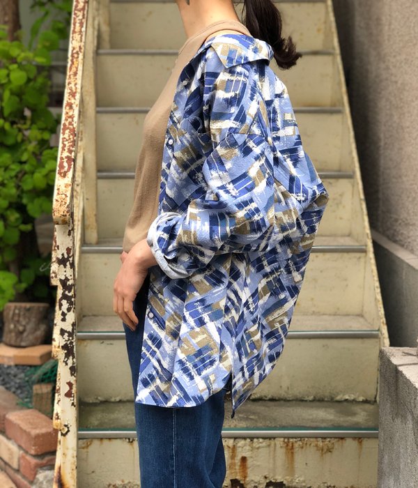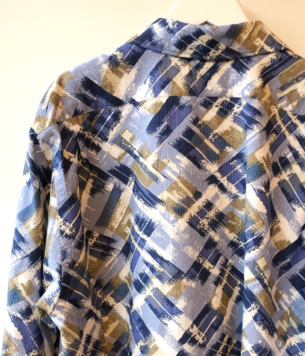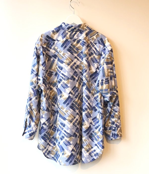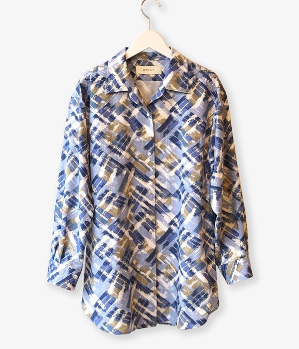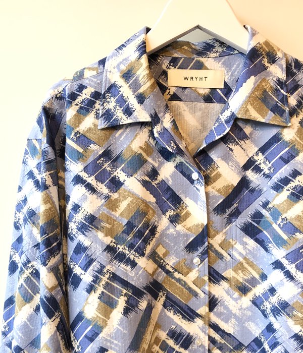 WRYHTからONE-PIECE COLLAR BLOUSE(AZUR)が入荷しました。ワンピースのパターンから製作されたオープンカラーのシャツ。ミッドセンチュリー期のデザインからインスピレーションのオリジナル生地を使用しています。ゆったりしたシルエットながらカジュアル過ぎずクリーンな印象で着用いただけます。