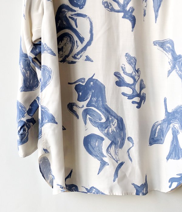 WRYHTからONE-PIECE COLLAR BLOUSEが入荷しました。台襟のない一枚つづきの襟回しのオープンカラーシャツ。WRYHTのシグネチャーデザインの一つであるドローイング柄はART作品から着想のものを手描きで表現。柄違いのアニマルパターンはキリンをモチーフに透け感のあるオーガンジーで製作。柄によって違う表情を見せてくれるユニークな一枚です。