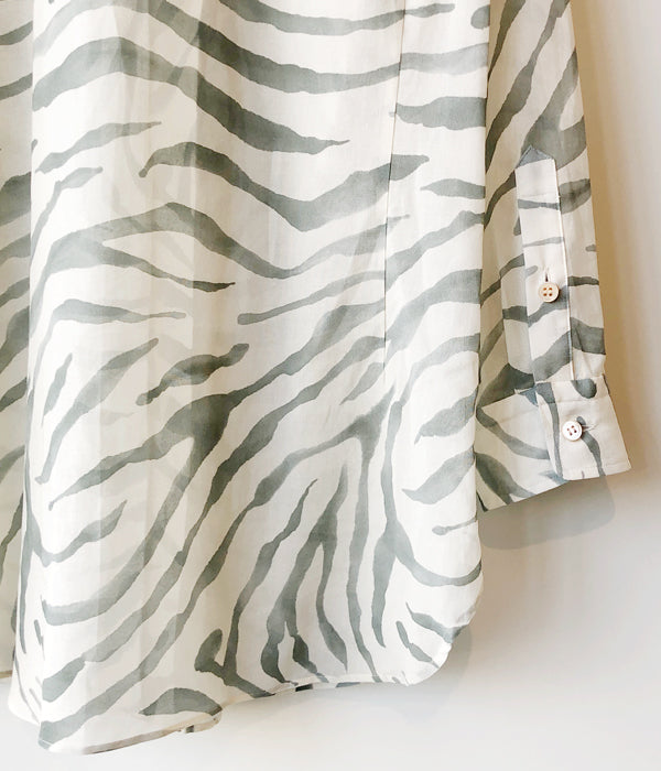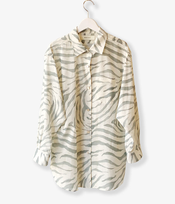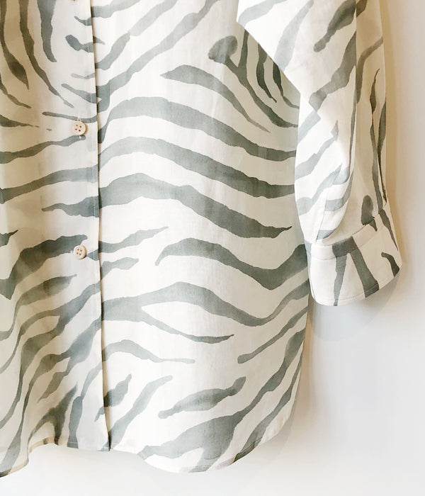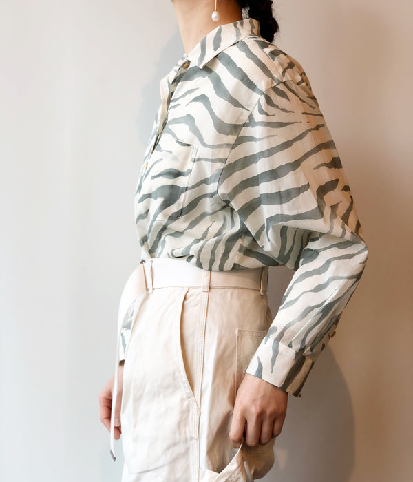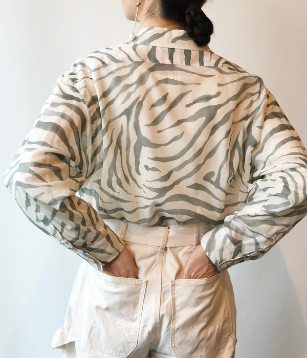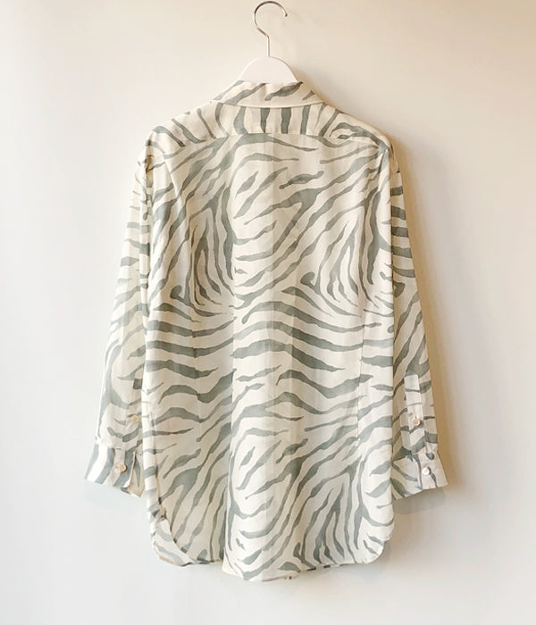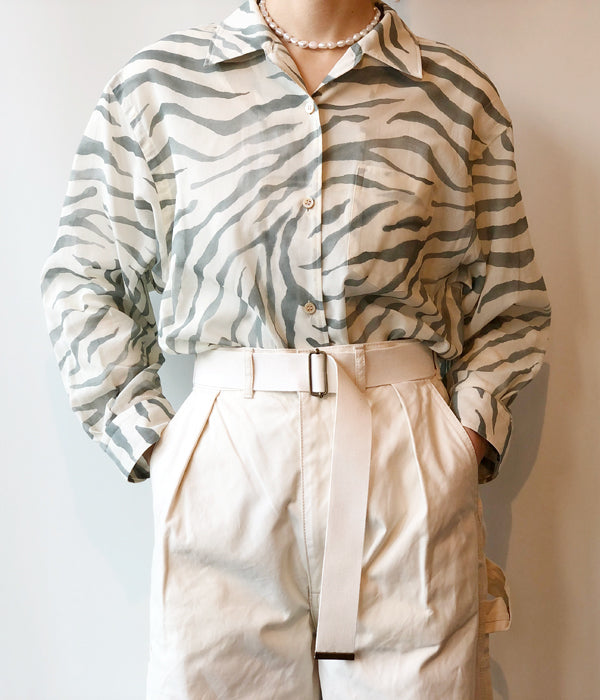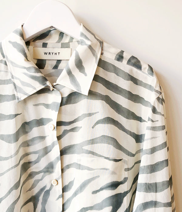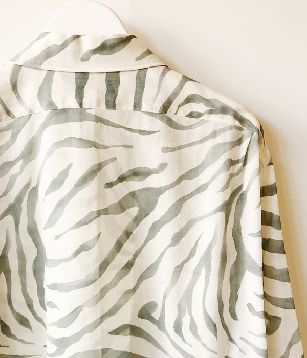 WRYHTからONE-PIECE COLLAR BLOUSEが入荷しました。台襟のない一枚つづきの襟回しのオープンカラーシャツ。WRYHTのシグネチャーデザインの一つでもあるドローイングテキスタイルを使用しています。今シーズンのモチーフは動物によって構成されたものに。筆のストロークが残る手描き柄と、生地の透け感がとてもユニークな仕上がりを見せます。アニマルパターンは21SSに続きサファリをイメージさせるゼブラがモチーフとなっています。