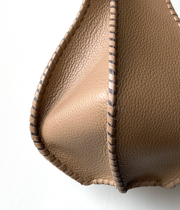 WRYHTからONION PORCHが入荷しました。アフリカの手作りポーチからデザインインスピレーションを受けた玉ねぎのようなシルエットをしたドローストリングポーチ。パーツの縫合をミシンではなく、一点一点手編みで形を改正しています。ユニークなフォルムでいつものコーディネートに面白みを。