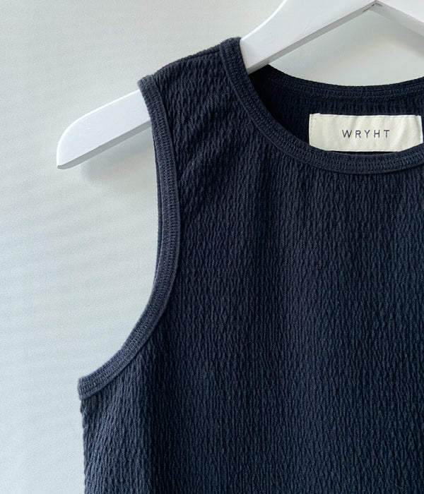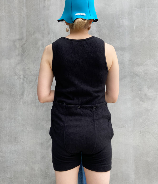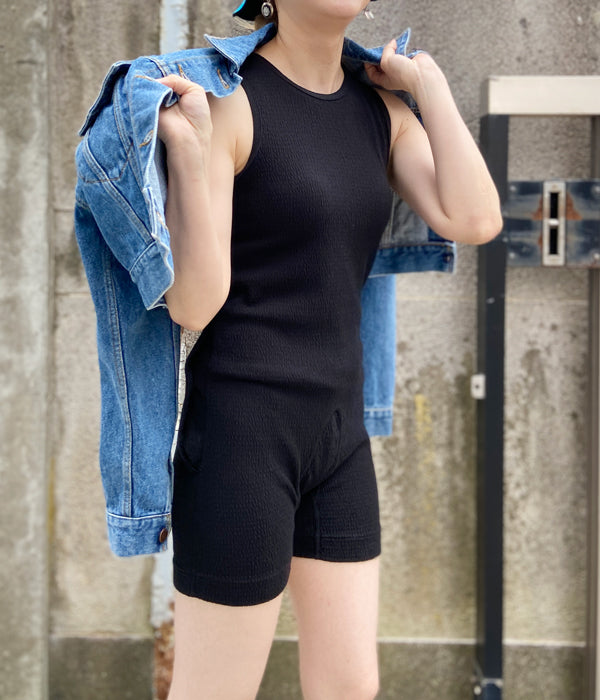 WRYHTからSHIRRING BORDER BODY SUITSが入荷しました。古き良き時代の紳士用下着から着想を得たボディスーツ。バックスタイルに配した開口から脚を出すことにより、通常のタンクトップを着る想定で着用できるデザイン。もちろんボディスーツとしても楽しめるユニークなピース。シアー素材のボトムを重ねるのも楽しい。アレンジのきく一枚です。