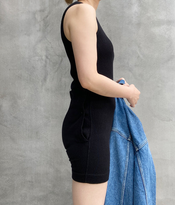 WRYHT/SHIRRING BORDER BODY SUITS(BLACK)